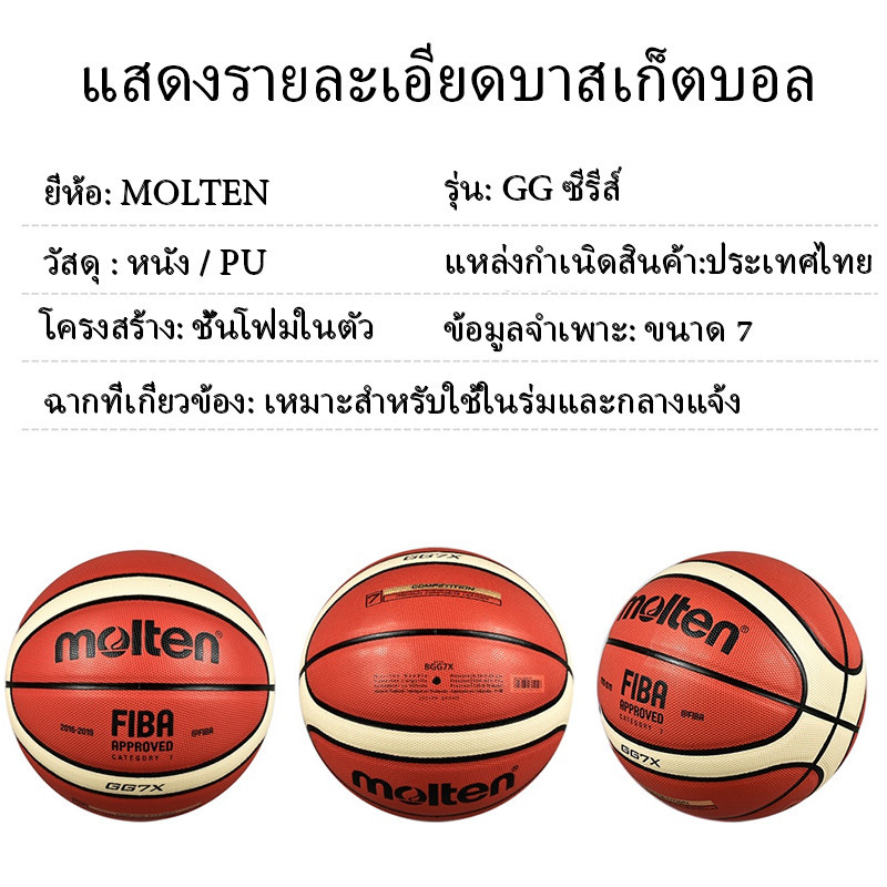 [Molten แท้ 100%] ลูกบาสเกตบอล Molten B7G3800-2 หนัง PU เบอร์ 7 เล่นพื้นปูนได้ ของแท้ ?(%)??