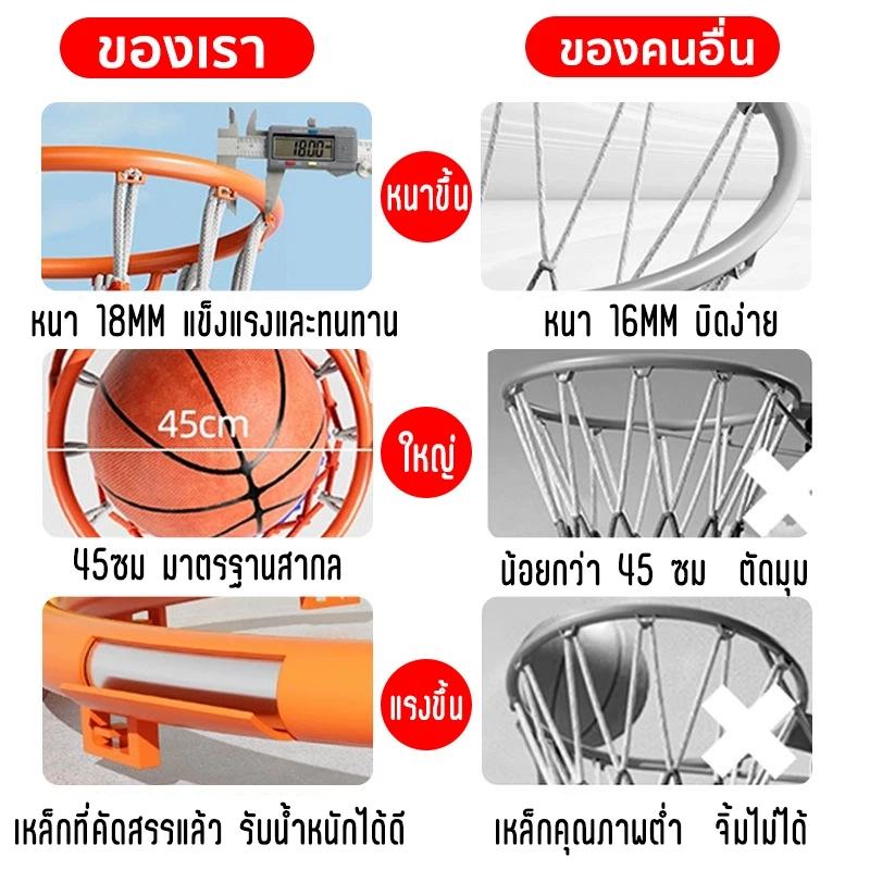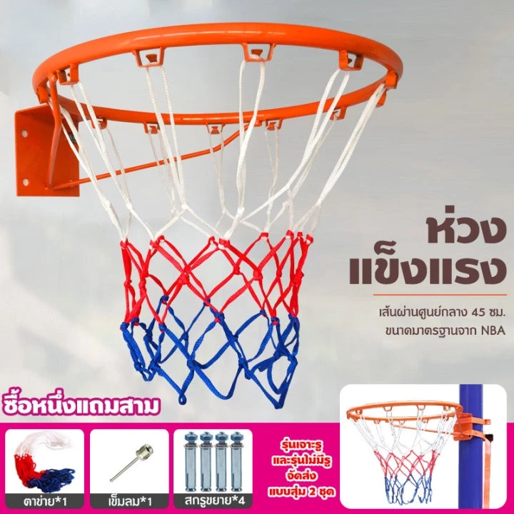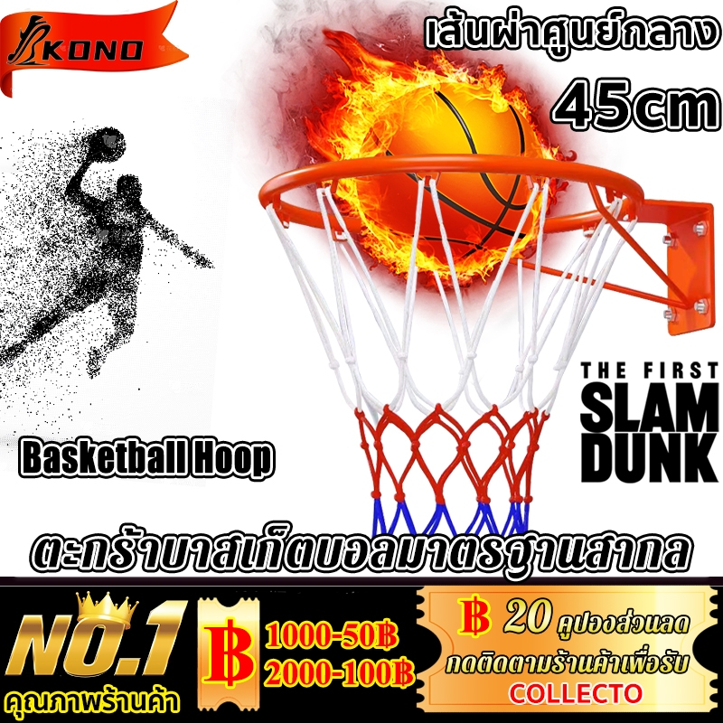 KONO Basketball Hoop พร้อมตาข่าย ห่วงบาสเกตบอล ขนาด 45 cm. แขวนติดผนังขอบโลหะ ห่วงบาสมาตรฐาน