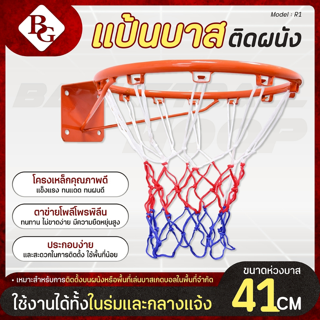 BG Basketball Hoop ห่วงบาส พร้อมตาข่าย ขนาด 41 cm รุ่น R1 ห่วงบาสเจาะผนัง ติดตั้งง่าย