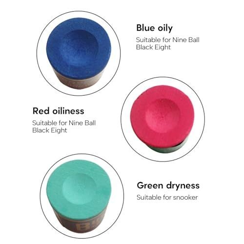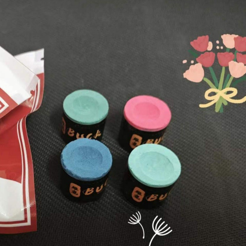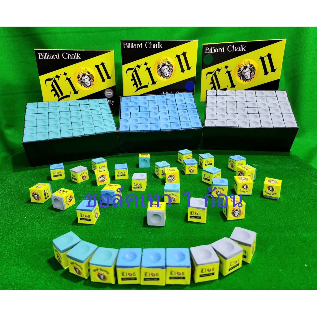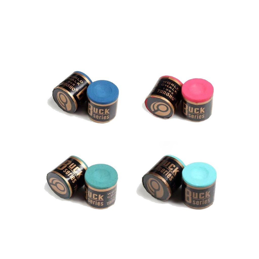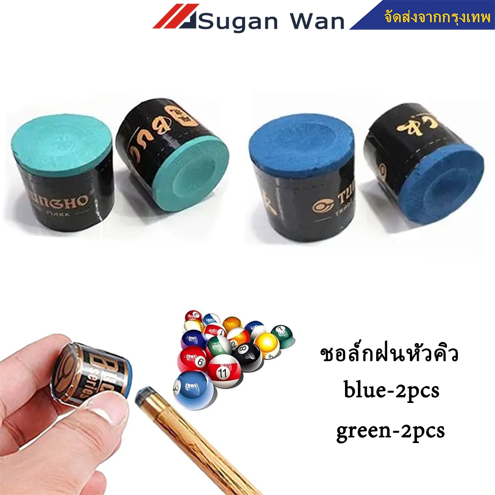 2 อัน ชอล์กฝนหัวคิว สีฟ้าเหมาะกว่าสำหรับ 9 ลูกดำแปด สีเขียวอ่อนเหมาะกับสนุ๊กเกอร์มากกว่า