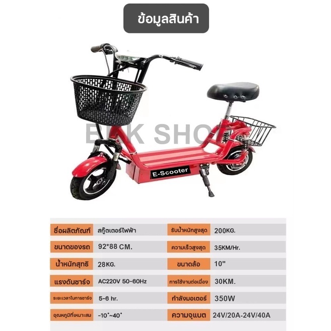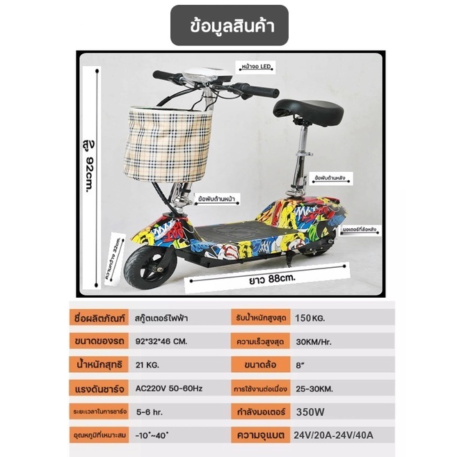 (ใหม่) สกู๊ตเตอร์ไฟฟ้า Electric Scooter 24V ไฟหน้า-ไฟหลัง LED จักรยานไฟฟ้า สกูดเตอร์ไฟฟ้า E-Scooter มอเตอร์ 350W