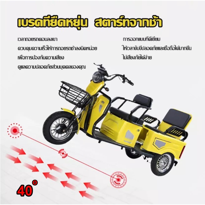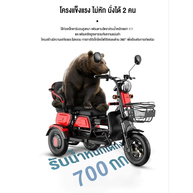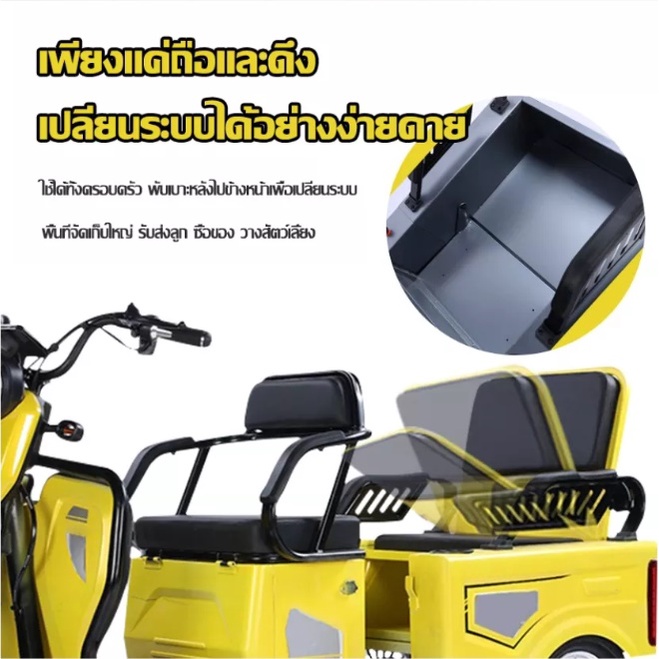 (**พร้อมแบต**) Electric Bicycle มอเตอร์ไซค์ไฟฟ้าสามล้อ 2 ตอน 48V มีกระจก ไฟเลี้ยว รถไฟฟ้า จักรยานไฟฟ้าผู้ใหญ่ ไฟ LED