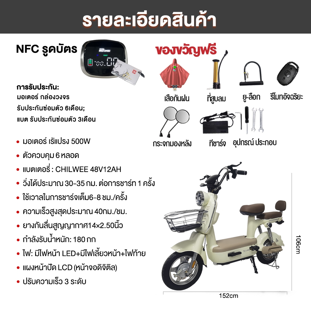[12.12] จักรยานไฟฟ้า รถไฟฟ้า 500W48V12AH รถไฟฟ้า ผู้ใหญ่ NFCรูดบัตร มีกระจกมองหลัง Electric bike แบตเตอรี่สี่ก้อน ตะก