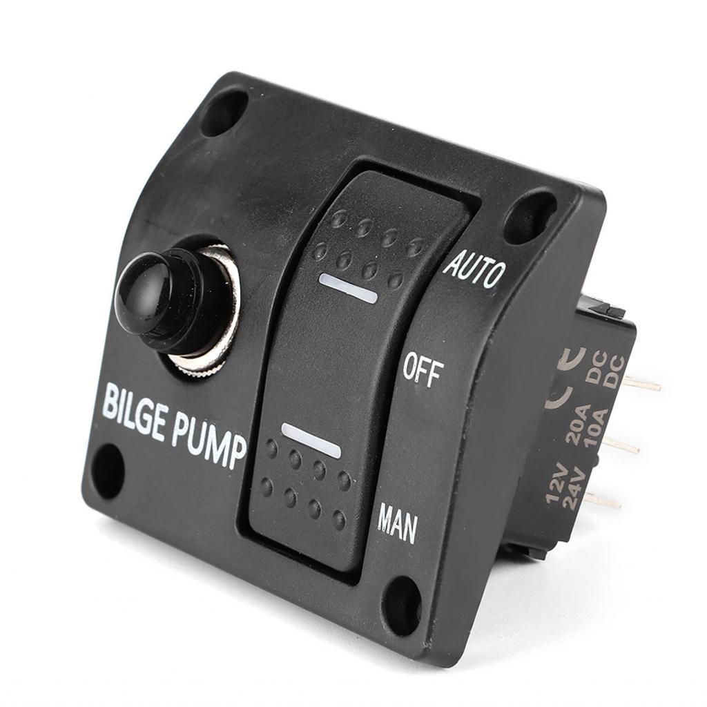Cloudshop1 ปั๊มน้ำท้องเรือ Rocker Switch 3-Way แผงอัตโนมัติ/ปิด/คู่มือ 12V 24V พร้อมไฟ LED ในตัว 15A Circuit Breaker
