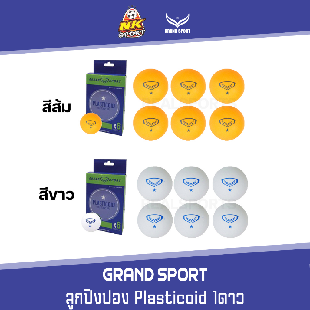 Grand Sport ลูกปิงปอง Plasticoid 1ดาว 6ลูก สีส้ม/สีขาว เส้นผ่านศูนย์กลาง 40 mm ทำจากวัสดุพลาสติซอยด์