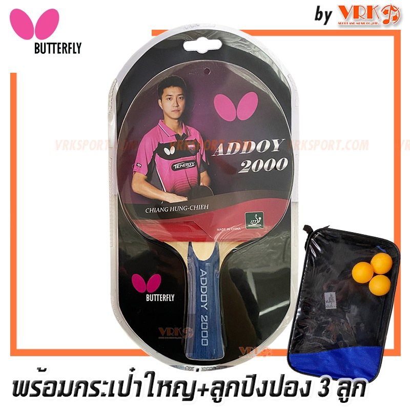 BUTTERFLY ไม้ปิงปอง รุ่น Addoy 3000 – พร้อมกระเป๋าใสสีเหลี่ยมพร้อมลูกปิงปอง 3 ลูก