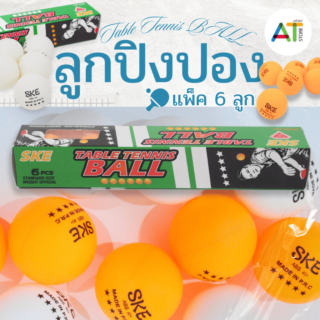 AT.Store ปิงปอง ลูกเทเบิลเทนนิส ลูกปิงปองฝึกซ้อม สำหรับเล่นปิงปองออกกำลังกาย (สีส้ม ,ขาว) (1 กล่อง = 6 ลูก)