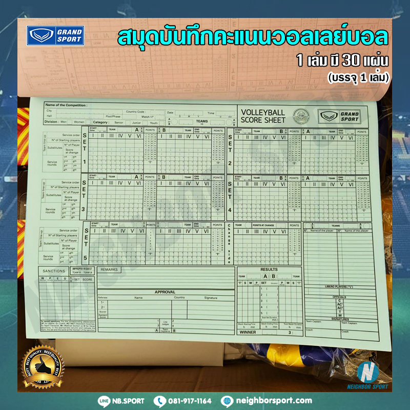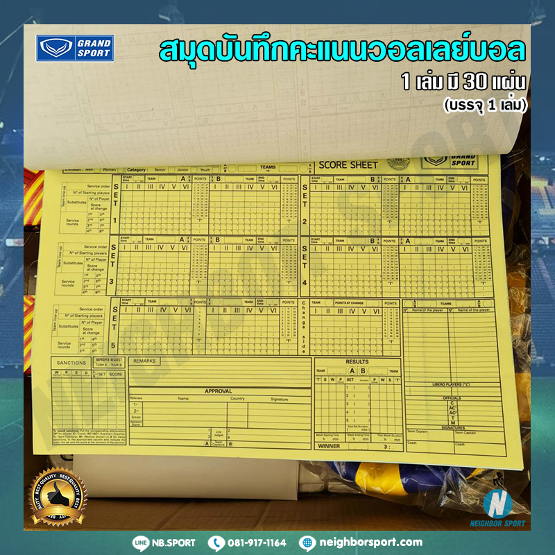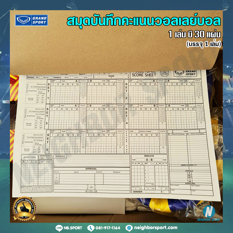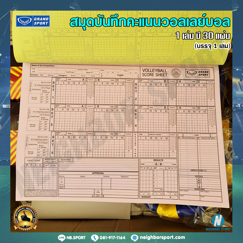 [1 เล่ม มี 30 แผ่น] สมุดบันทึก คะแนนวอลเลย์บอล ? GRAND SPORT #332907