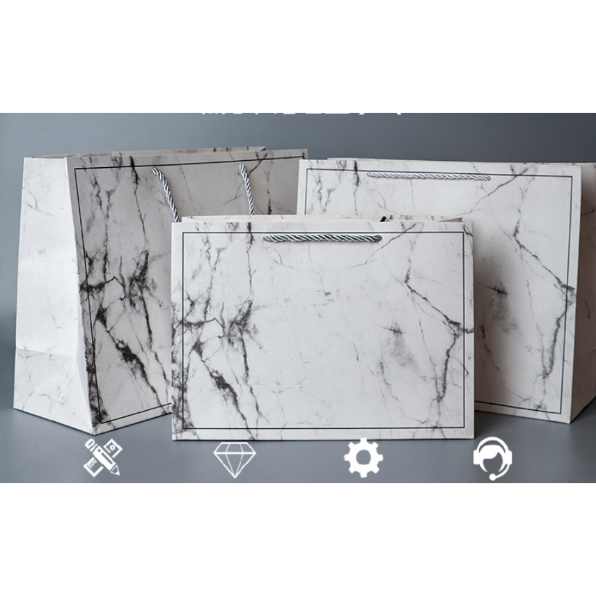 ?? PK ?? ถุงกระดาษ ถุงช้อปปิ้ง กระเป๋าหิ้ว ใส่ของ ใส่กำนัน ใส่ของรับไหว้ (ถุงลายหินอ่อน)