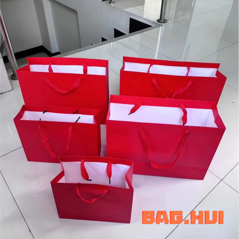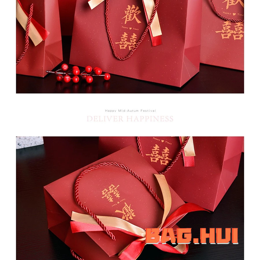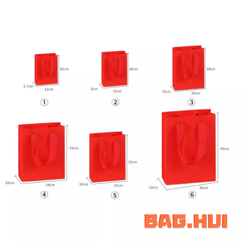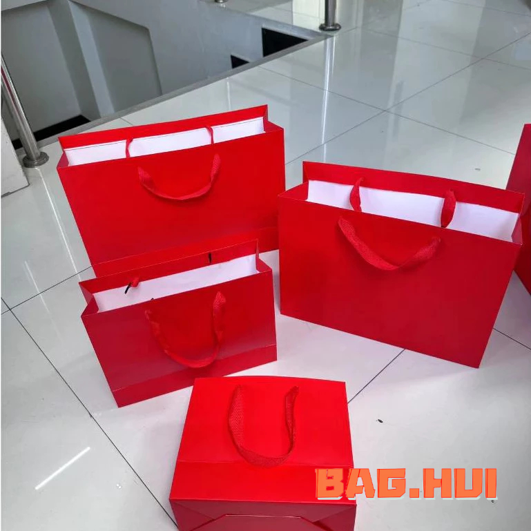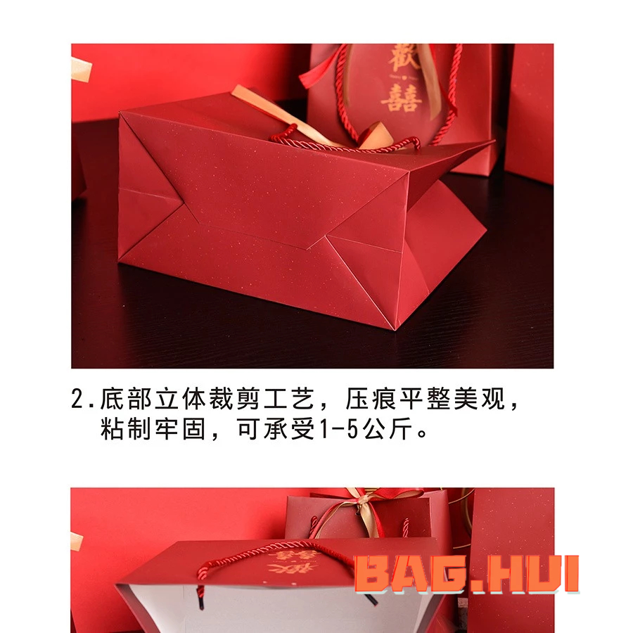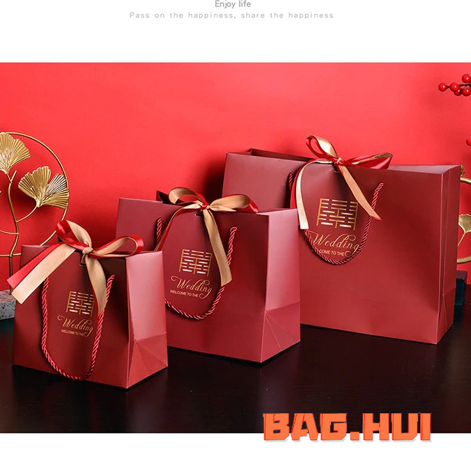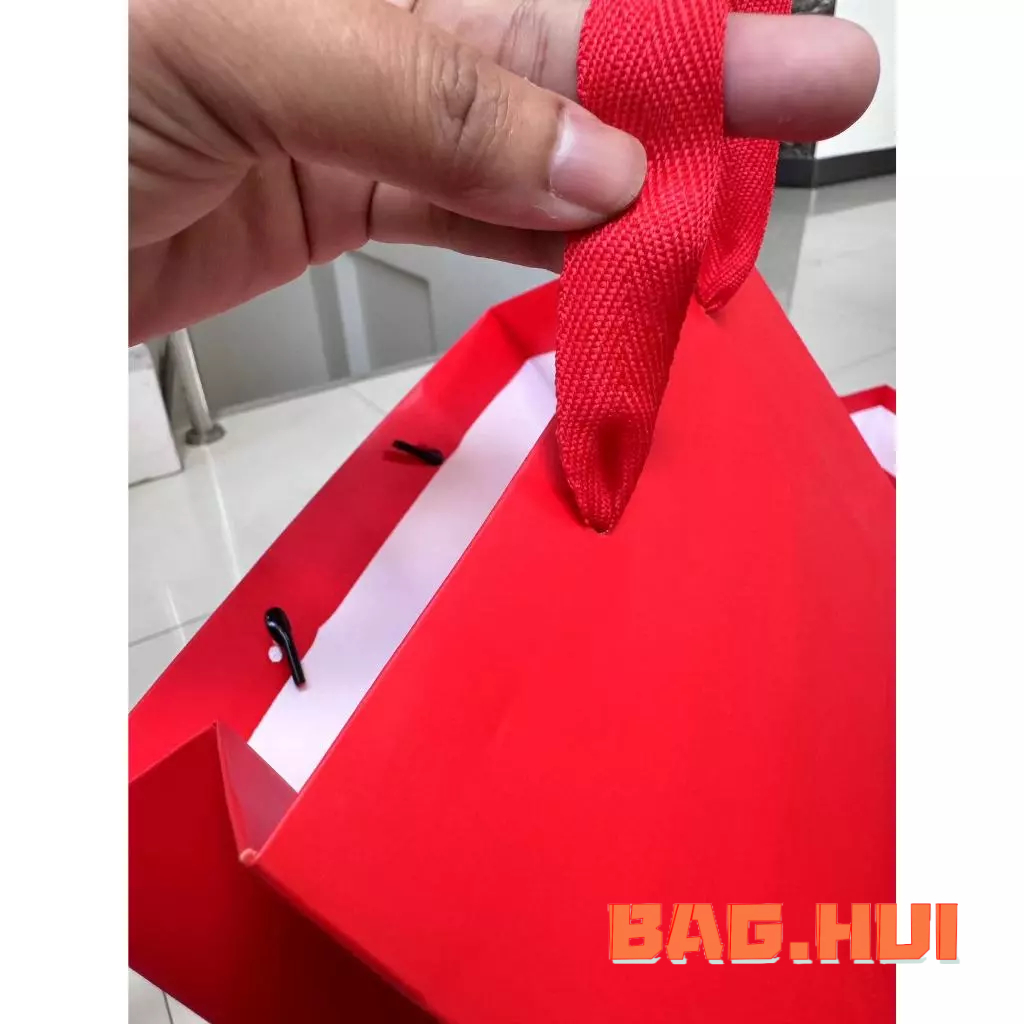 ??BH ถุงกระดาษ +ริบบิ้นโบว์ สีแดง ใส่ของขวัญแต่งงาน wedding ใส่ของใช้ทั่วไป หูหิ้วเชือก กระดาษหนา พร้อมส่ง