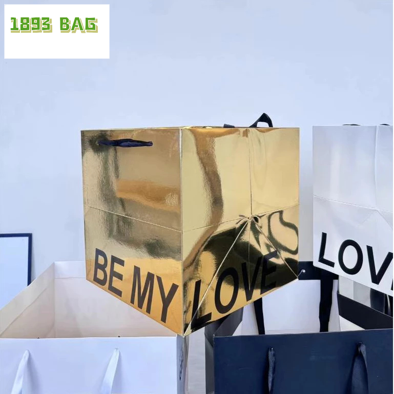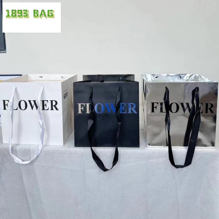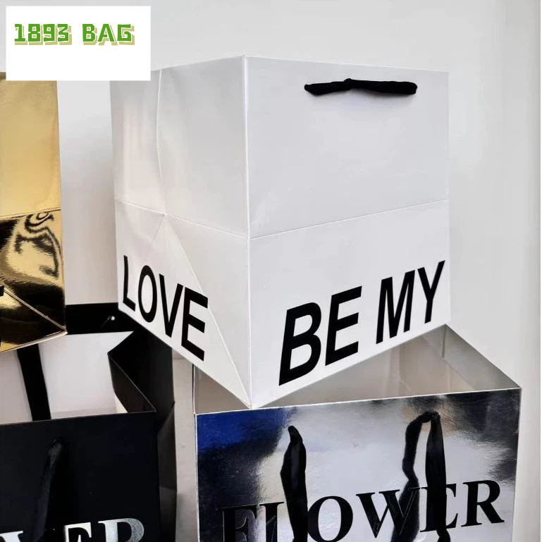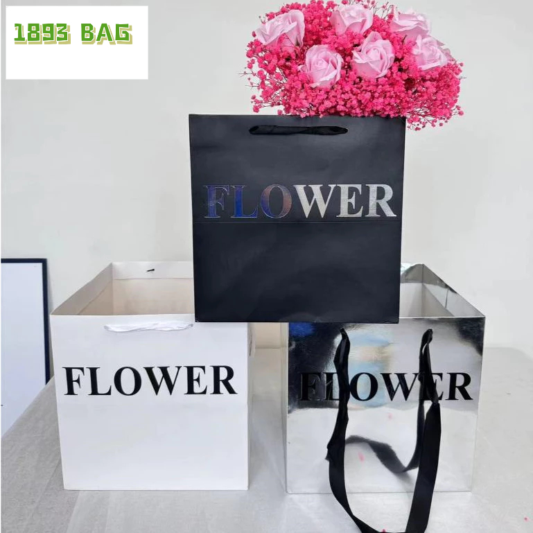 ? ถุงด้านเท่า ฐานกว้าง กระดาษหนาเคลือบ เชือกหิ้วยาว ใส่ดอกไม้ ใส่เค้กปอนด์ ใส่ของขวัญ พร้อมส่ง