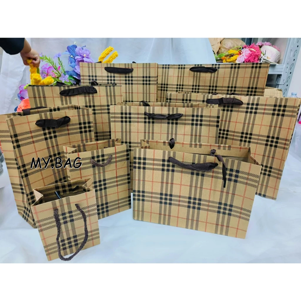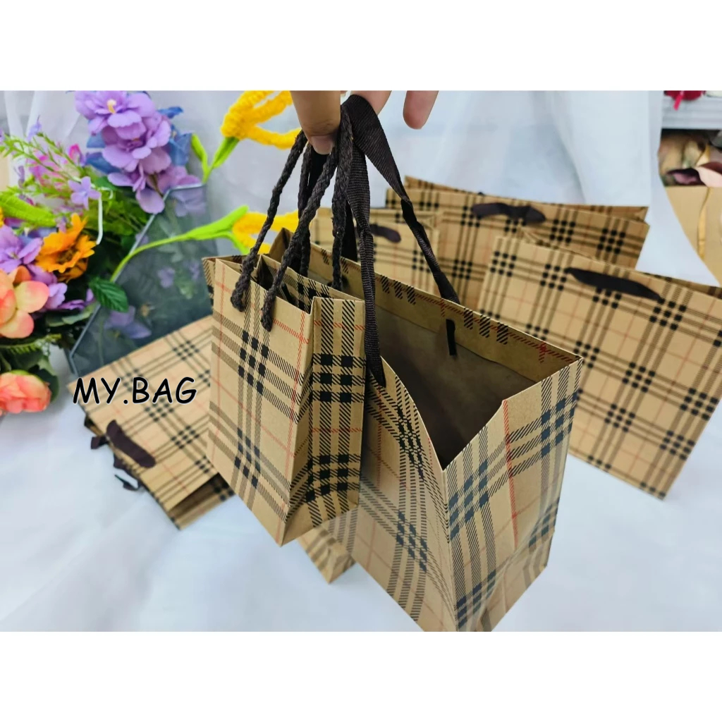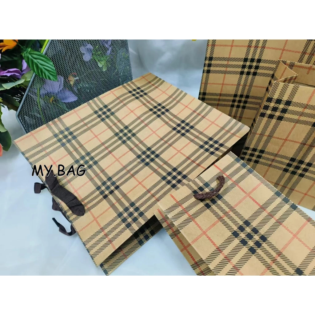 ??BAG?? ถุงกระดาษ คลาสสิค กระดาษคราฟท์ ลายตางราง สีน้ำตาล หูริบบิ้น ใส่ของ เสื้อผ้า เครื่องสำอาง