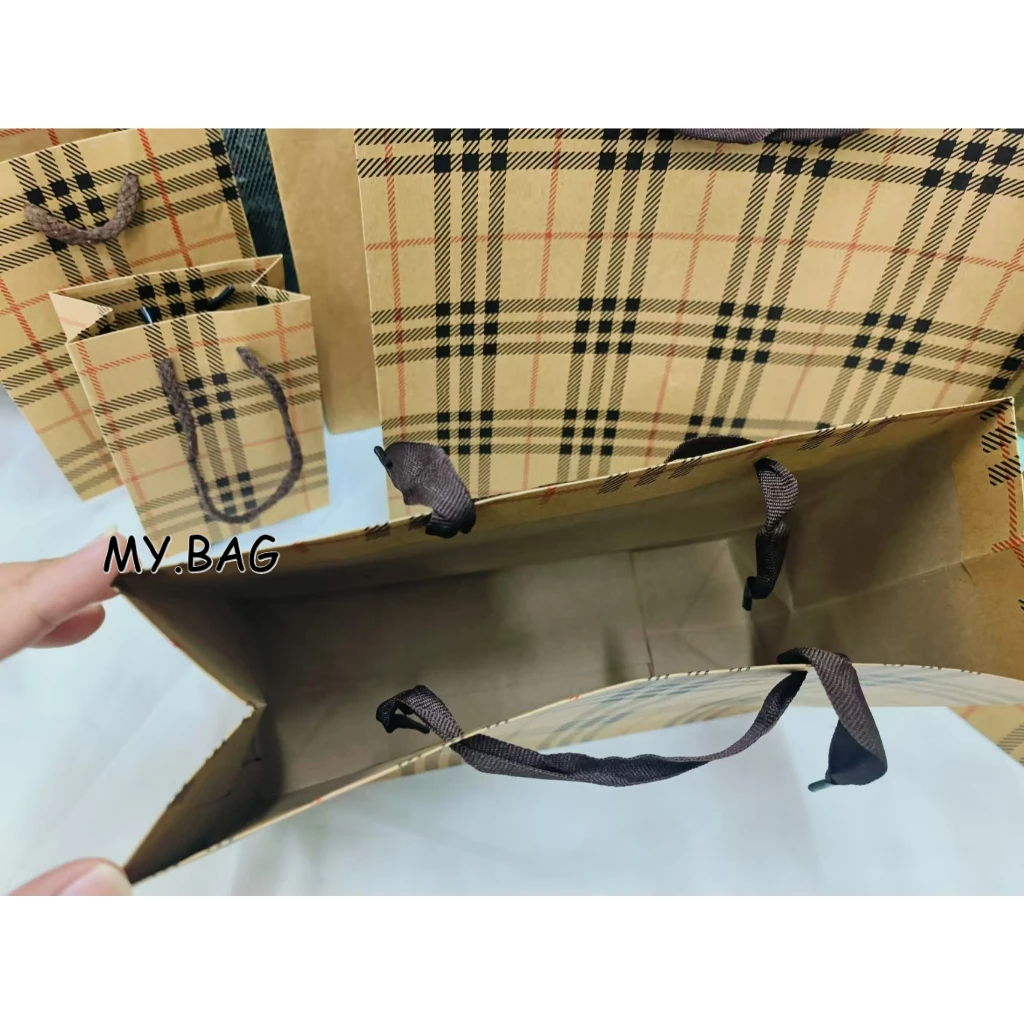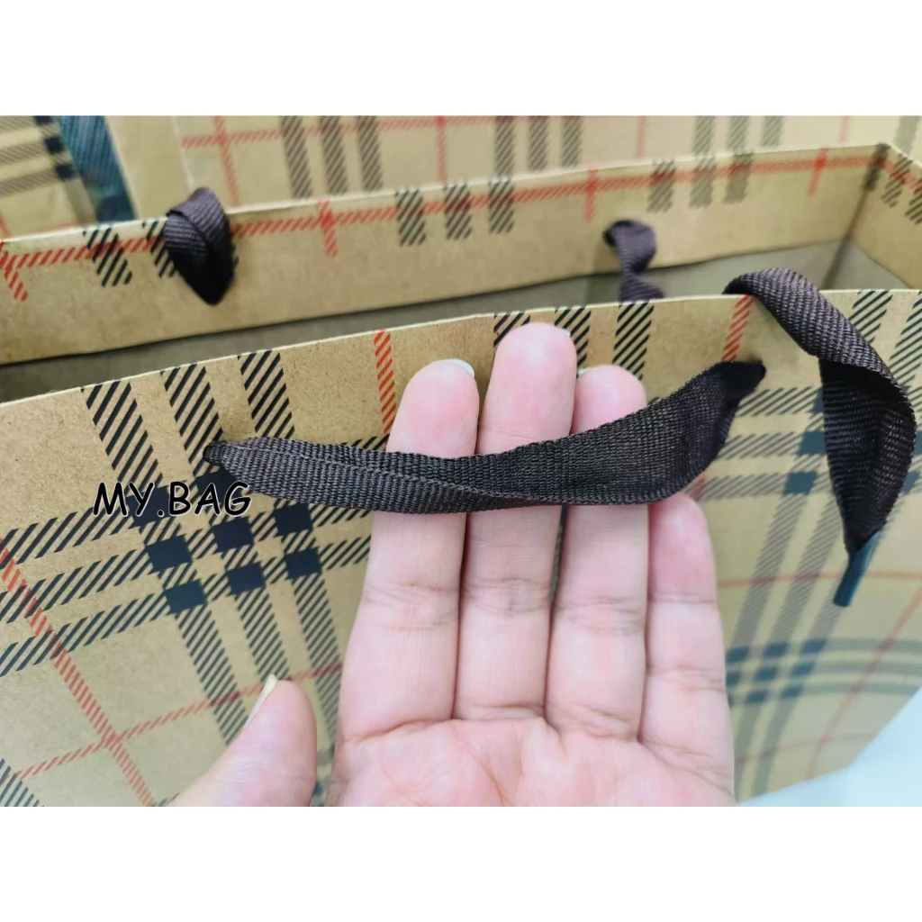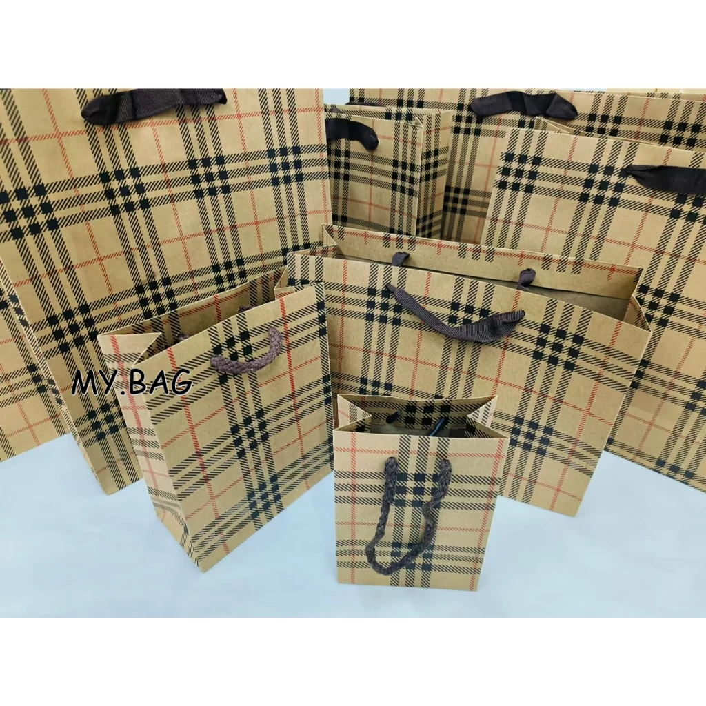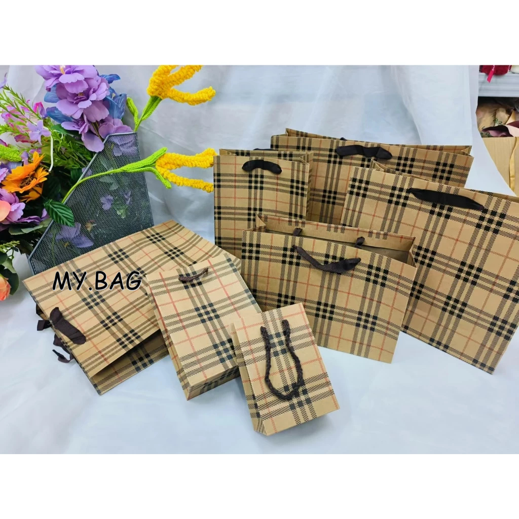 ??BAG?? ถุงกระดาษ คลาสสิค กระดาษคราฟท์ ลายตางราง สีน้ำตาล หูริบบิ้น ใส่ของ เสื้อผ้า เครื่องสำอาง