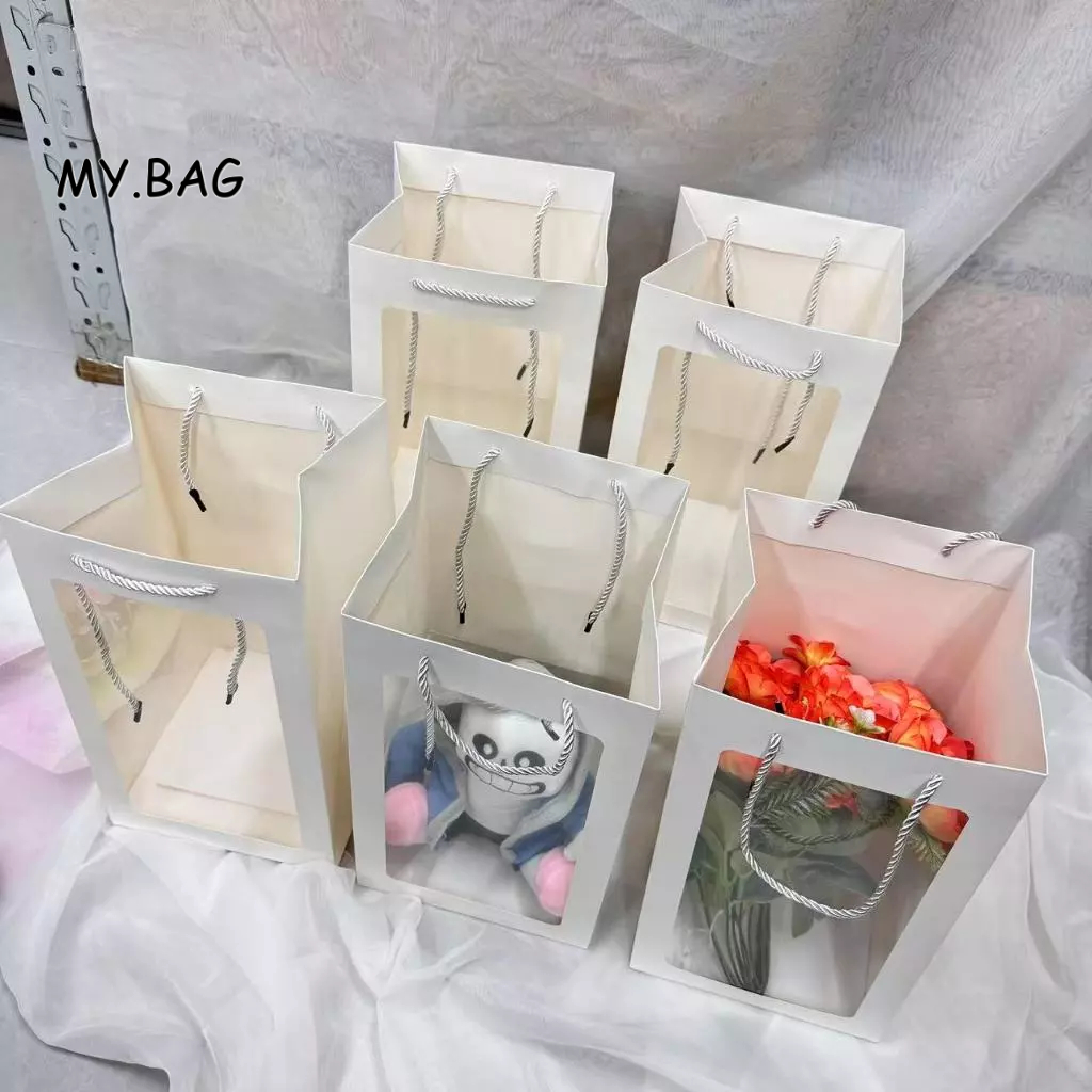 ??BAG??ถุงกระดาษ หน้าใส ใส่ช่อดอกไม้ ตุ๊กตา ขนาด 20*20*35 cm ทรงสูง ใส่ช่อดอกไม้