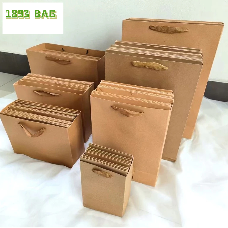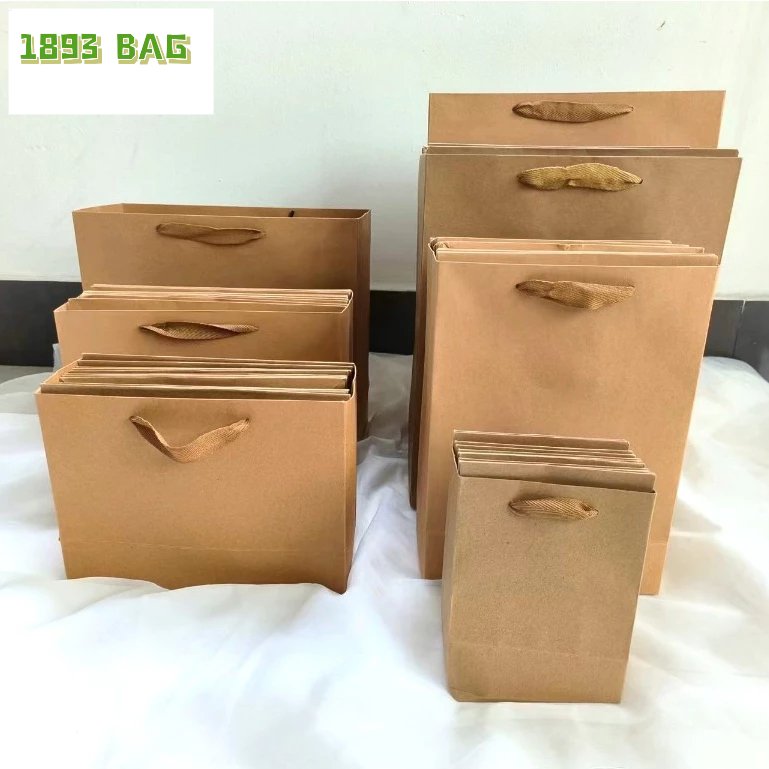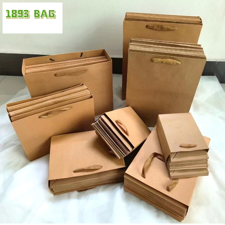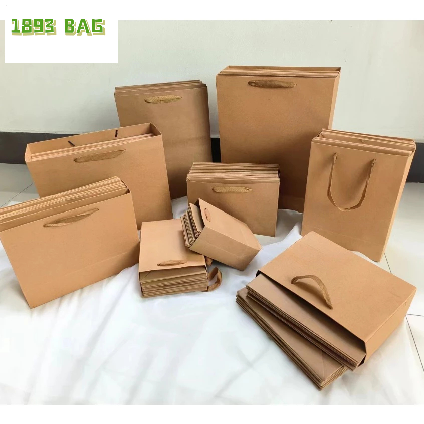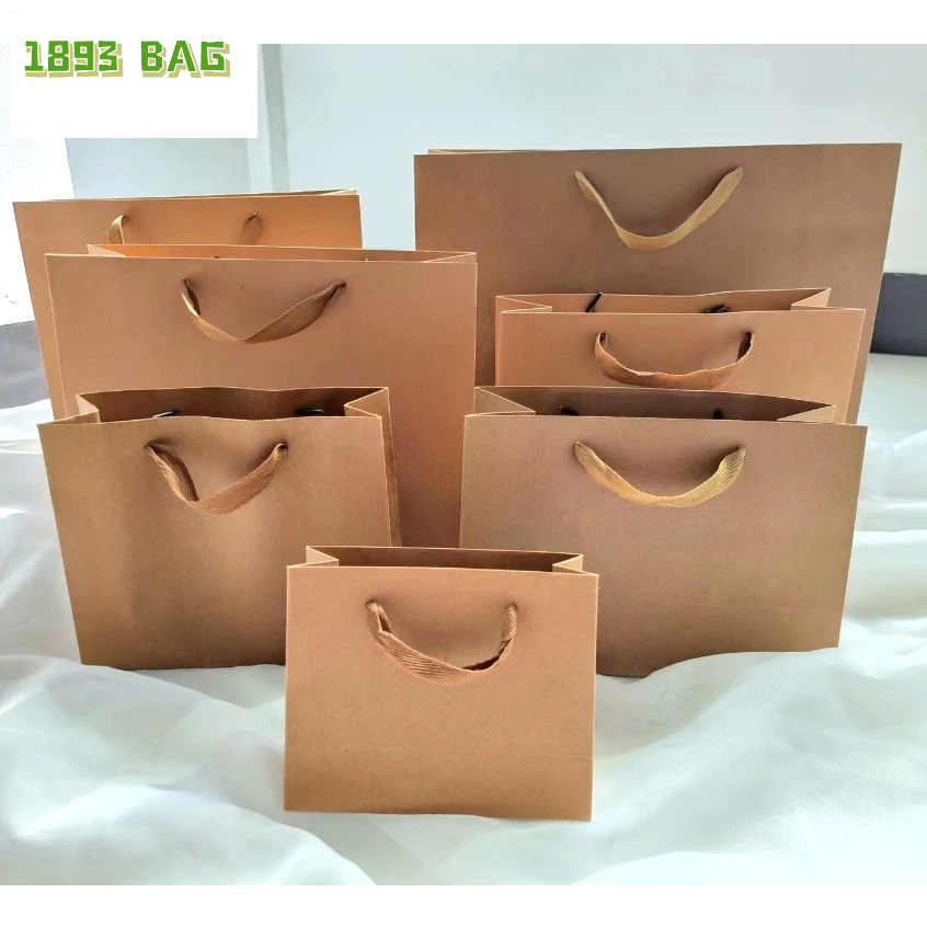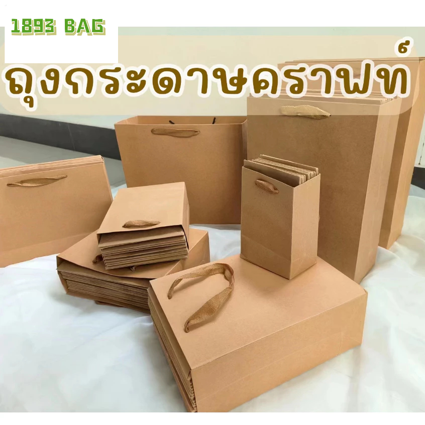 ? ถุงหูหิ้ว ถุงใส่ของ สีน้ำตาล กระดาษคราฟท์ ใส่เสื้อผ้า ใส่สินค้า ของใช้ทั่วไป ราคาถูก พร้อมส่ง