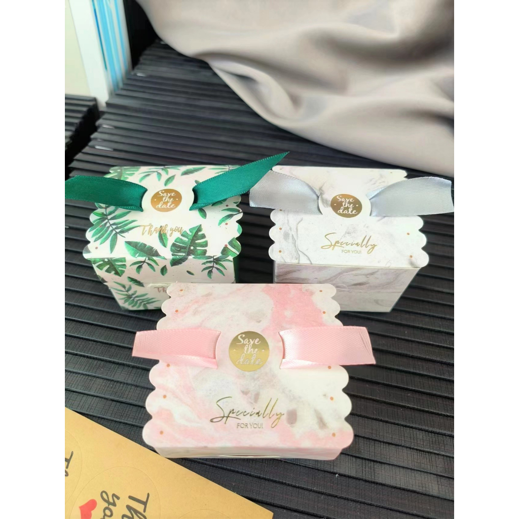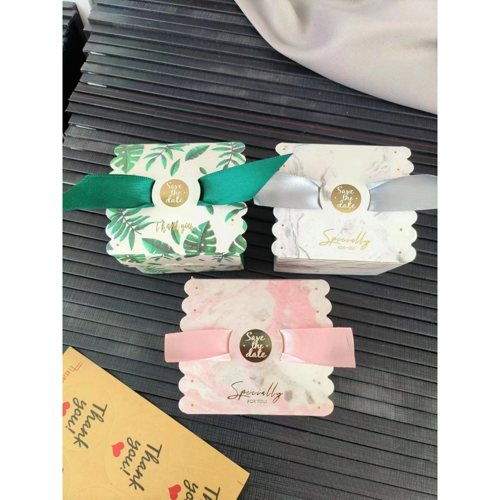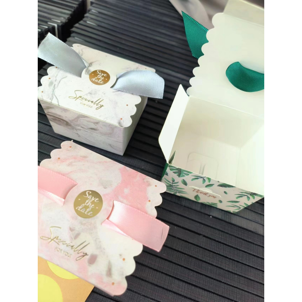 ? กล่องของชำร่วย กล่องของขวัญขนาดเล็ก แถมริบบิ้น กล่องกระดาษพิมพ์ลาย พร้อมส่ง