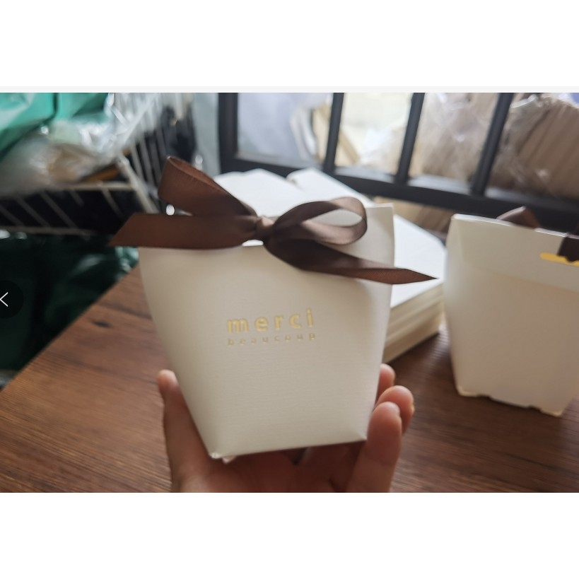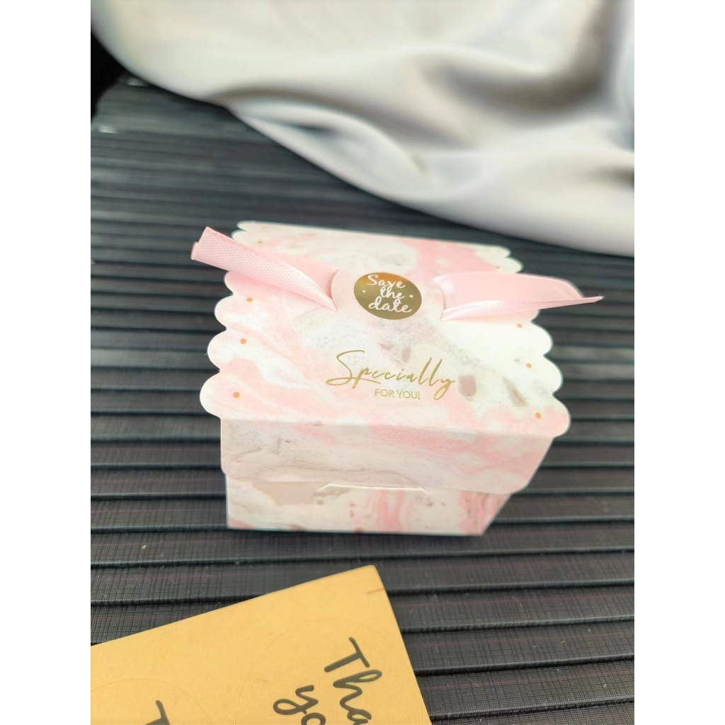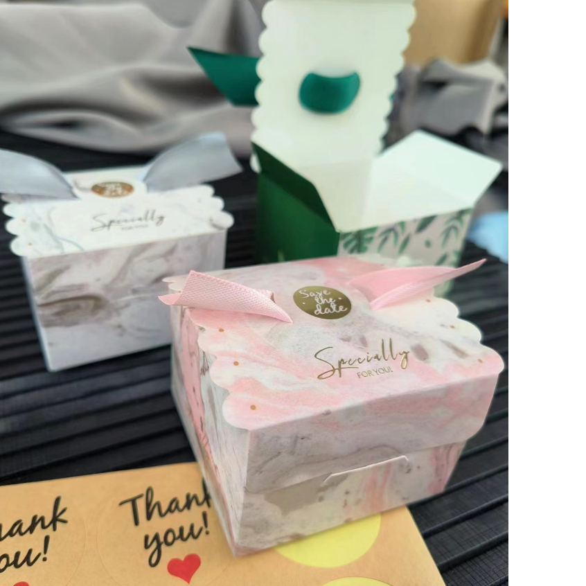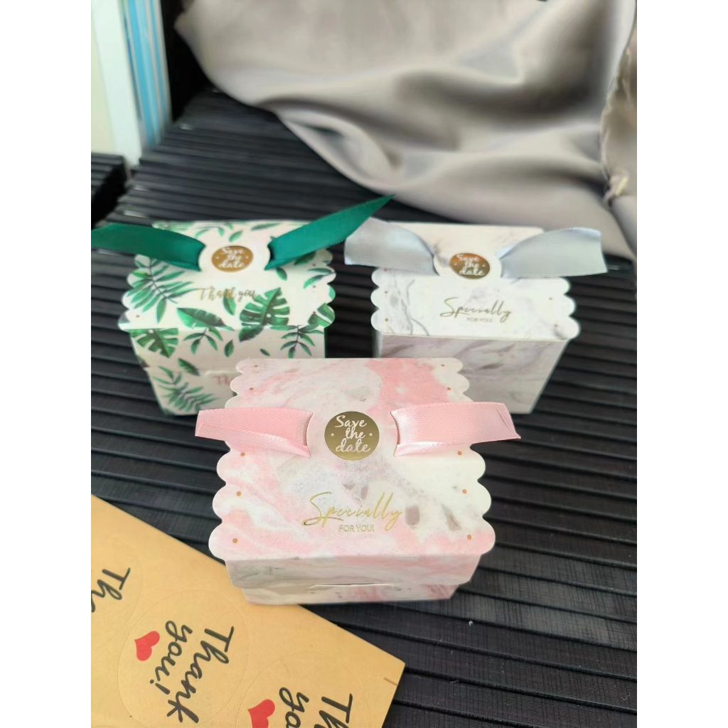 ? กล่องของชำร่วย กล่องของขวัญขนาดเล็ก แถมริบบิ้น กล่องกระดาษพิมพ์ลาย พร้อมส่ง