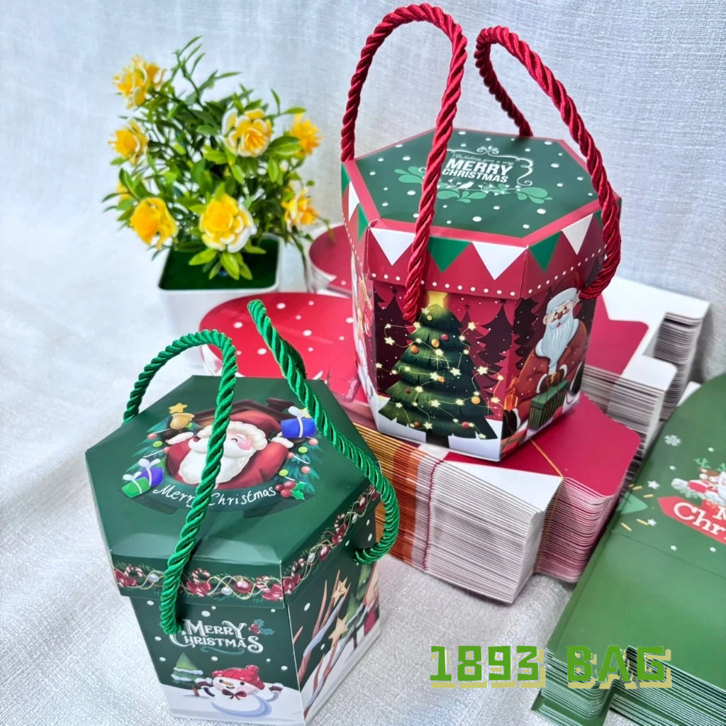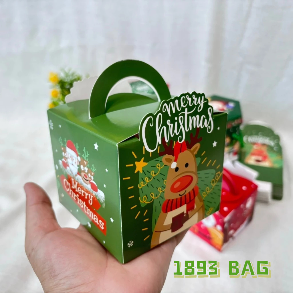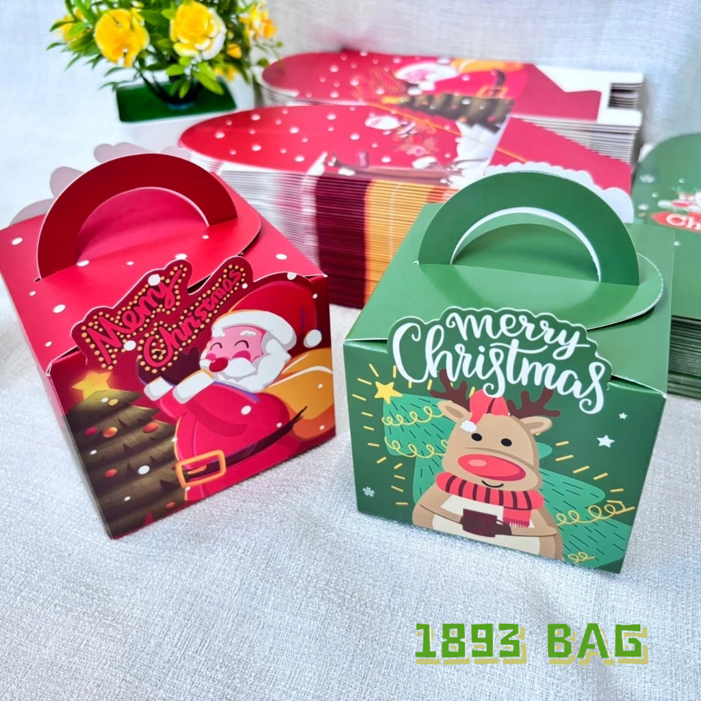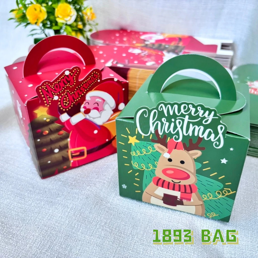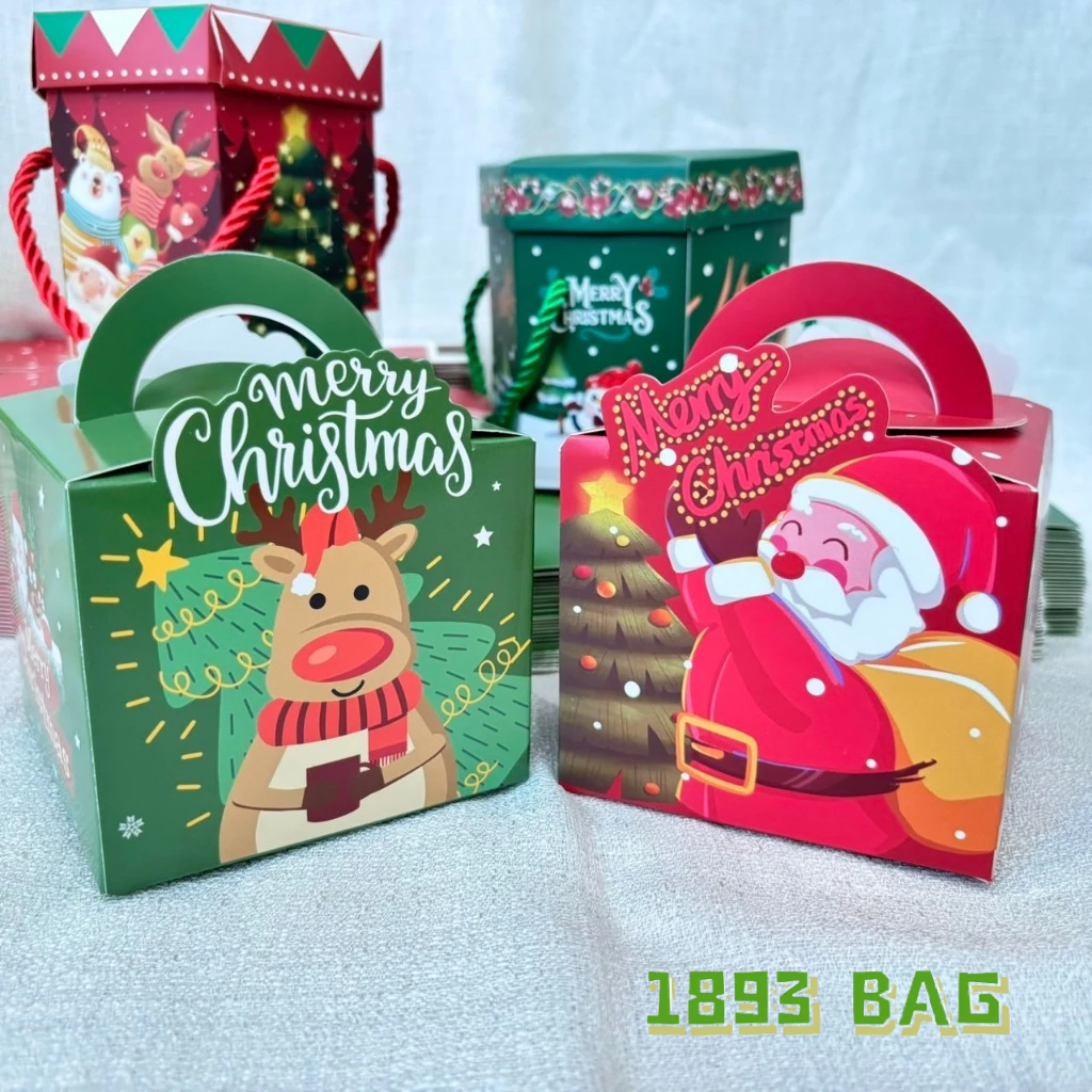 ? กล่องของขวัญ คริสต์มาส ซานตาครอส แบบเชือกหิ้ว แบบหูจับ ใส่ขนม สีแดง สีเขียว พร้อมส่ง