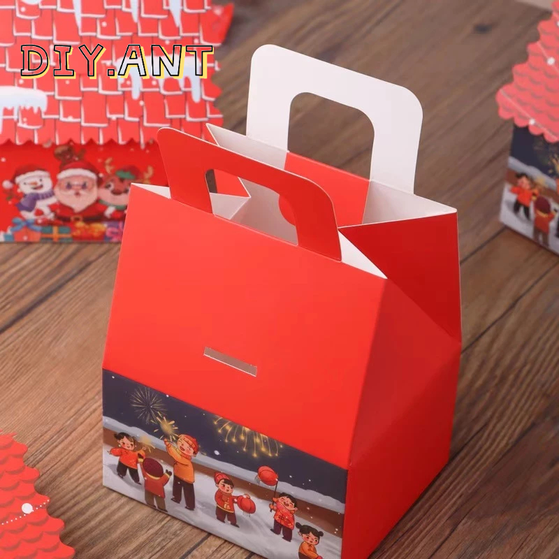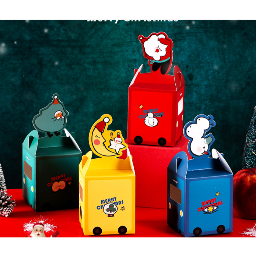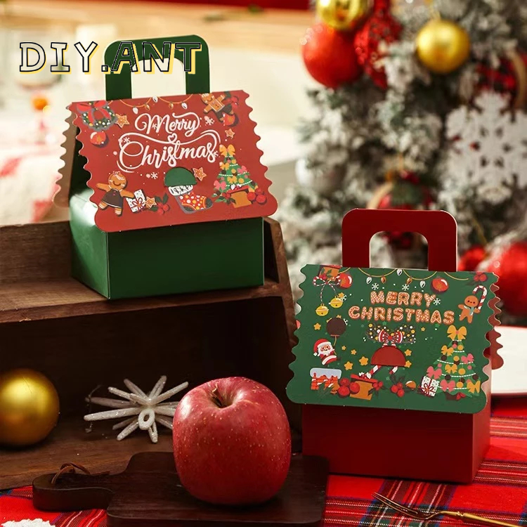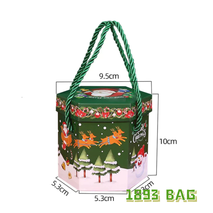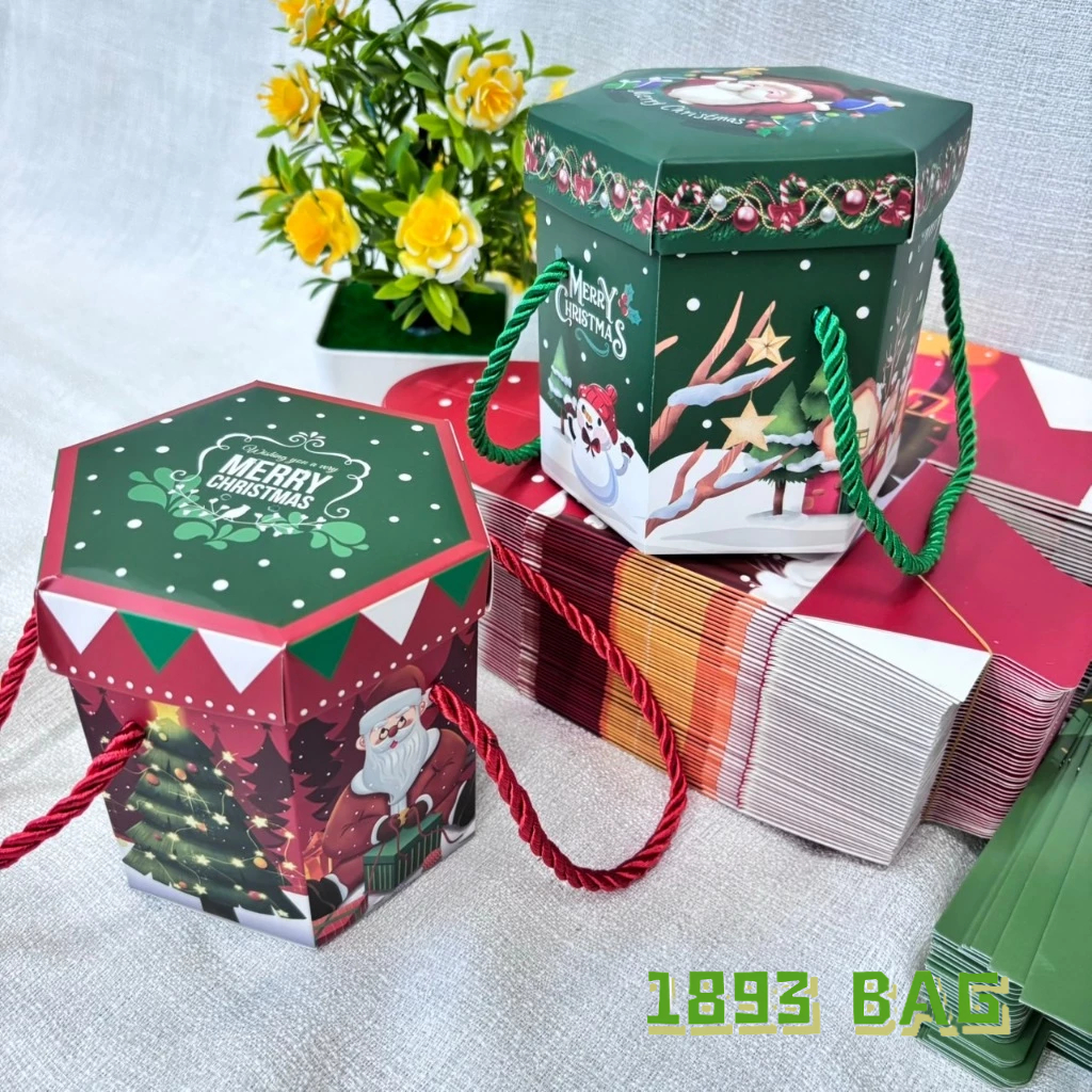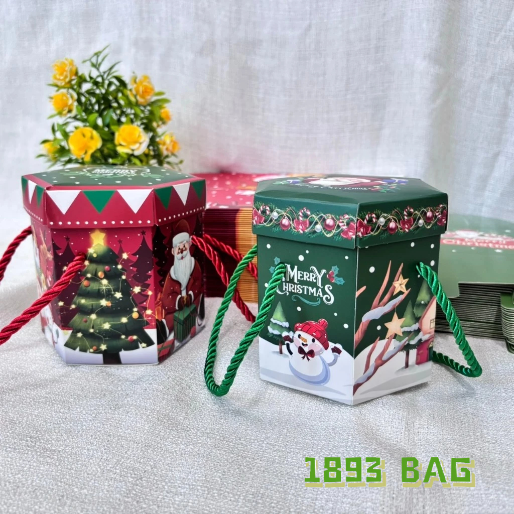 ? กล่องของขวัญ คริสต์มาส ซานตาครอส แบบเชือกหิ้ว แบบหูจับ ใส่ขนม สีแดง สีเขียว พร้อมส่ง
