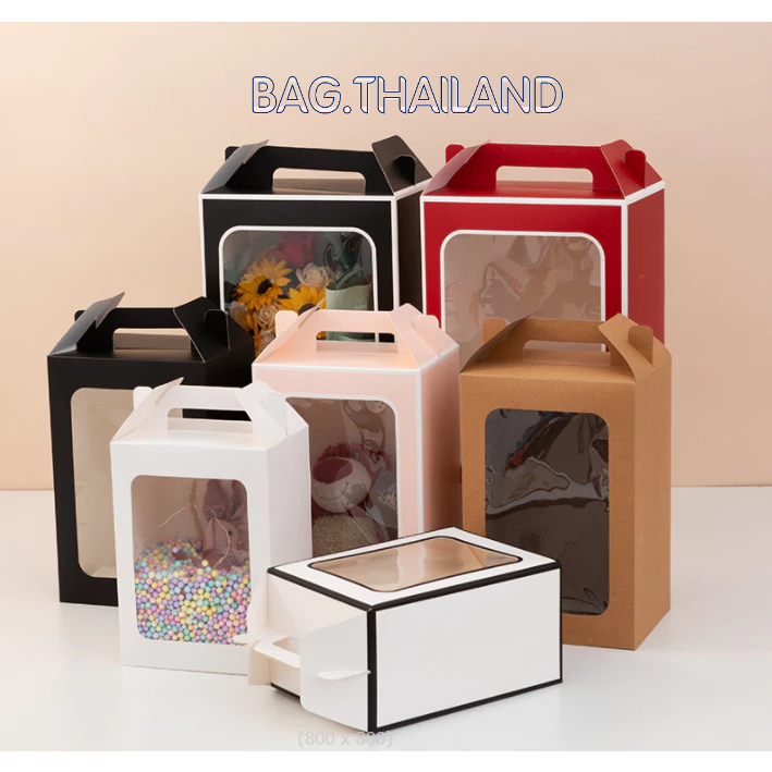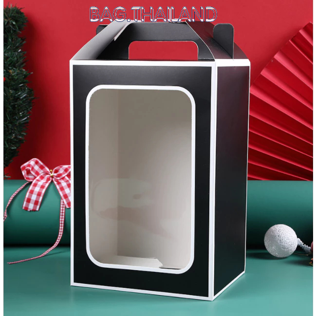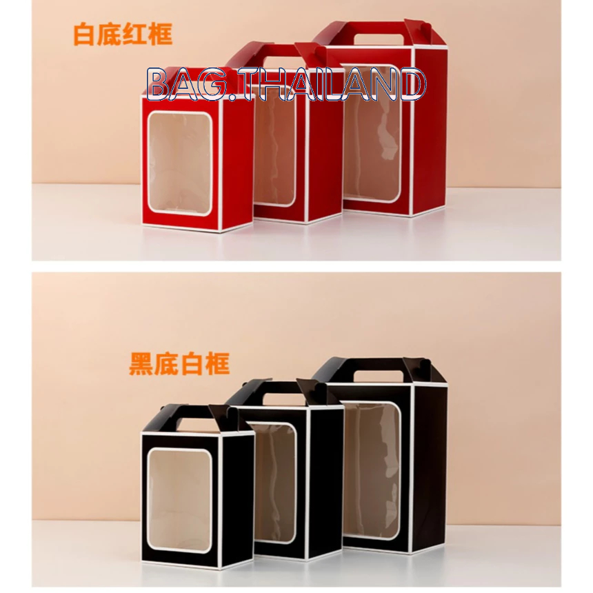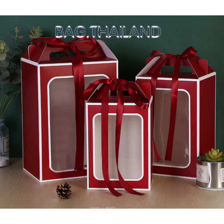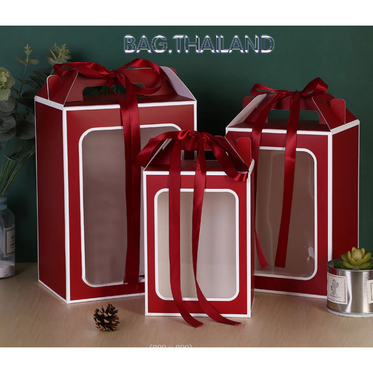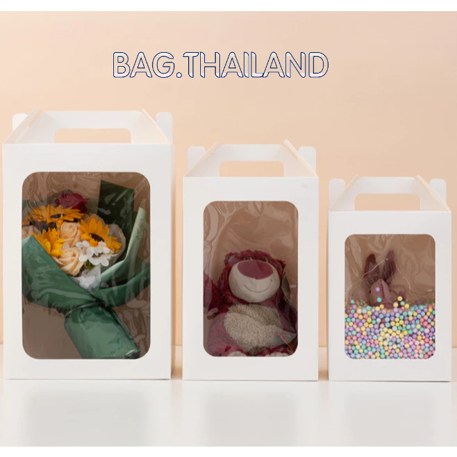?bag?(พร้อมส่งในTH) กล่องกระดาษหน้าใส่ ของขวัญ ช่อดอกไม้สำหรับวาเลนไทน์ มีหูหิ้ว(ไม่เเถมโบว์)