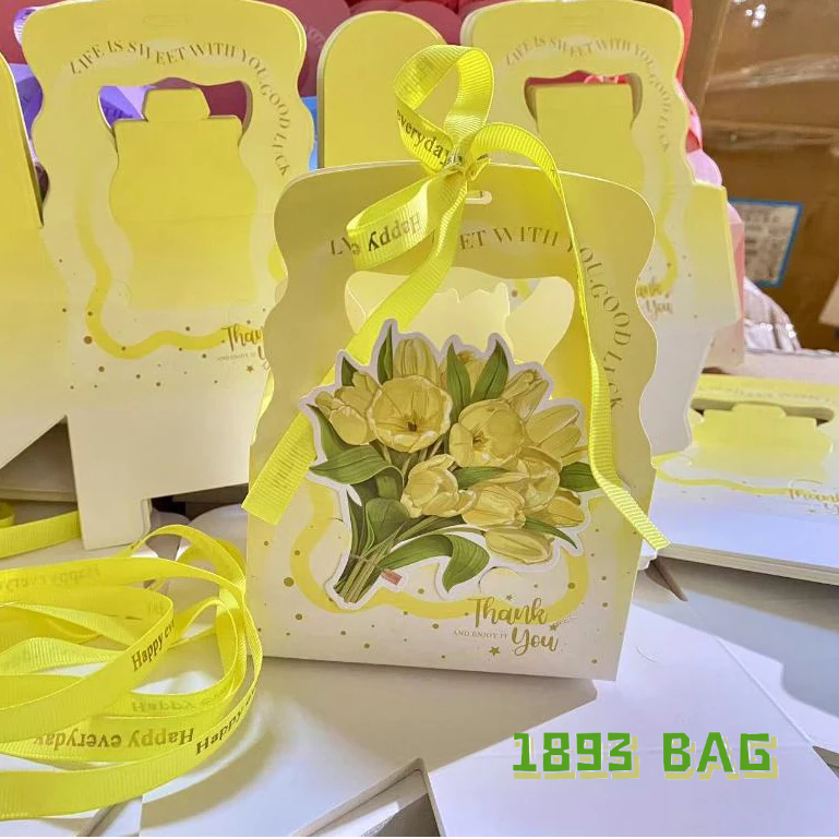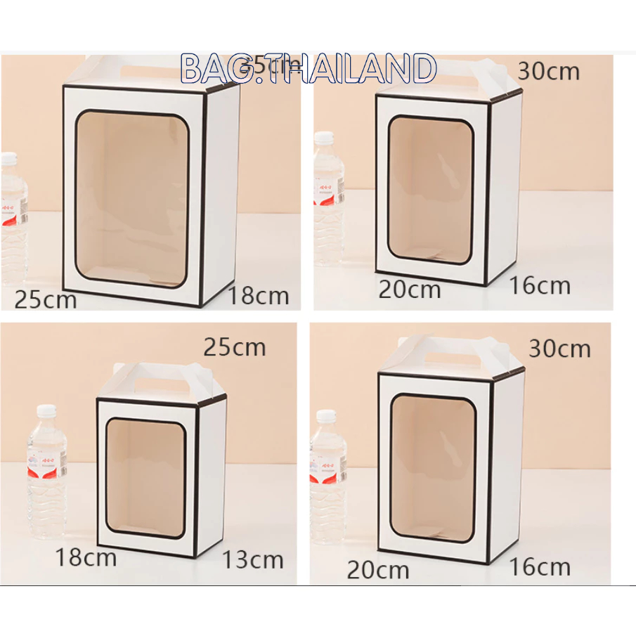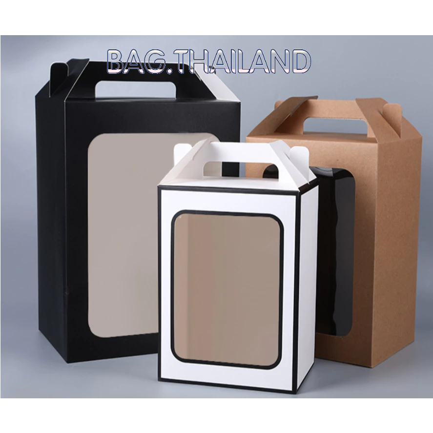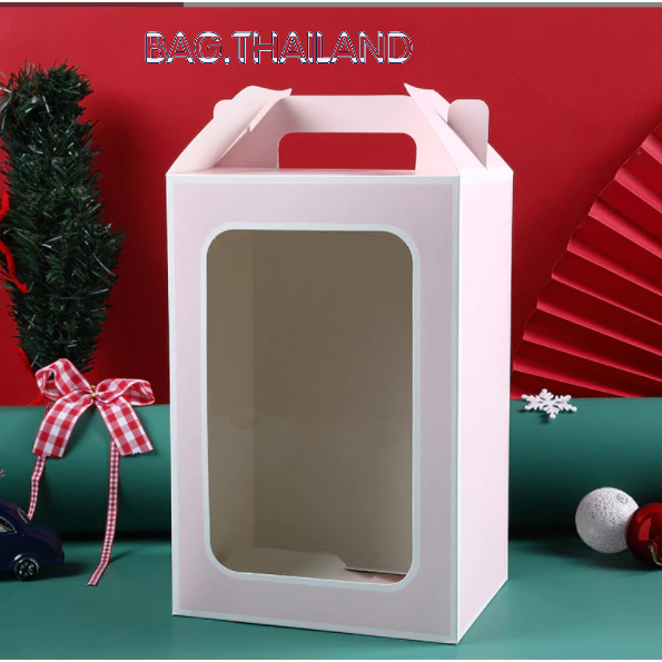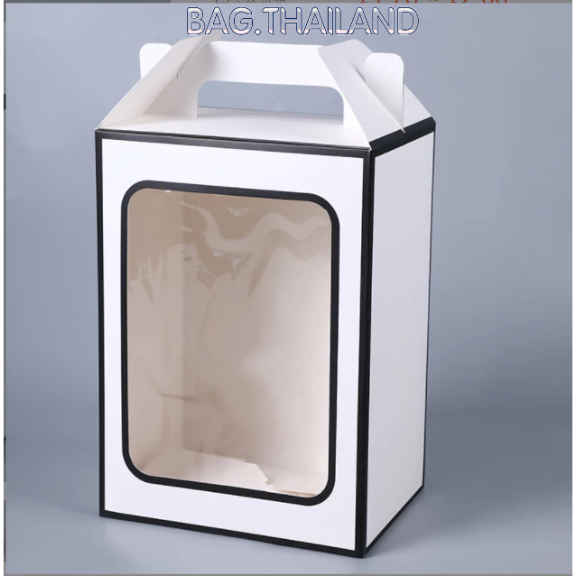 ?bag?(พร้อมส่งในTH) กล่องกระดาษหน้าใส่ ของขวัญ ช่อดอกไม้สำหรับวาเลนไทน์ มีหูหิ้ว(ไม่เเถมโบว์)
