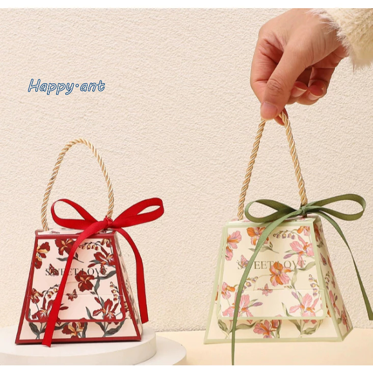 ??กล่องของขวัญ ลายดอกไม้ ใส่ของขวัญ ของชำร่วย ใส่ขนม ของแจก (สินค้าพร้อมส่ง)