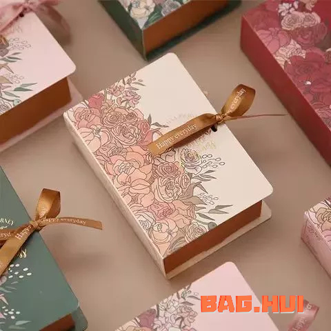 ??BH กล่องของขวัญ ใส่ของชำร่วย ใส่เครื่องประดับ ออกแบบเป็นสมุด ลายดอกกุหลาบ แถมริบบิ้น พร้อมส่ง
