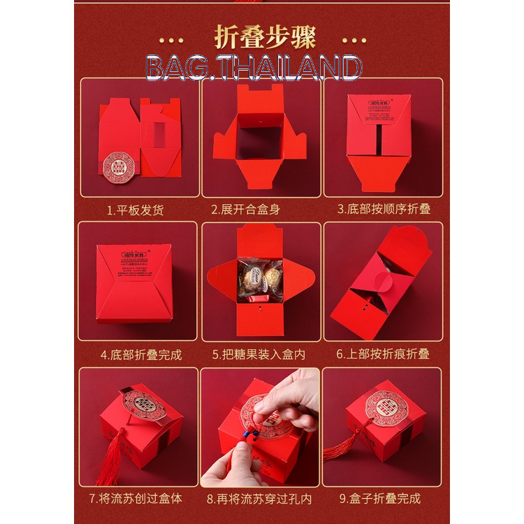?bag??กล่องของขวํญสไตล์จีน กล่องใส่ของงานแต่ง จัดการงานแต่ง กล่องใส่ของรับไหว้ มีพู่ พร้อมส่งในไทย