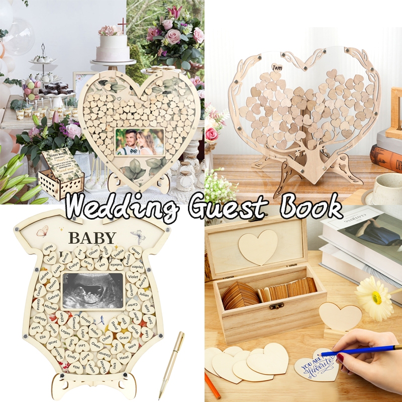 ไม้รูปหัวใจสร้างสรรค์งานแต่งงานกล่องลายเซ็นงานแต่งงานเกสต์สมุดเยี่ยมงานแต่งงานโปร่งใสพิธีหนังสือกระดานลายเซ็น Guest Book Box Wedding Guest Book