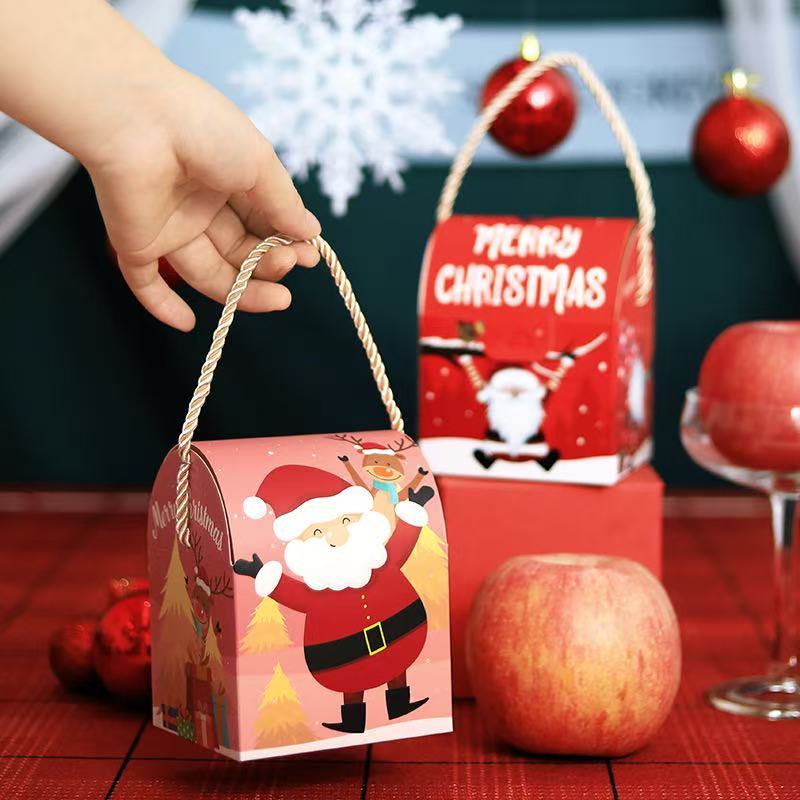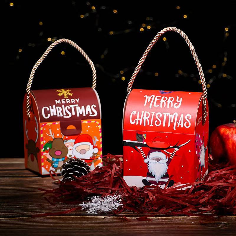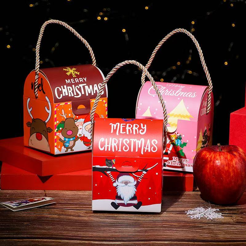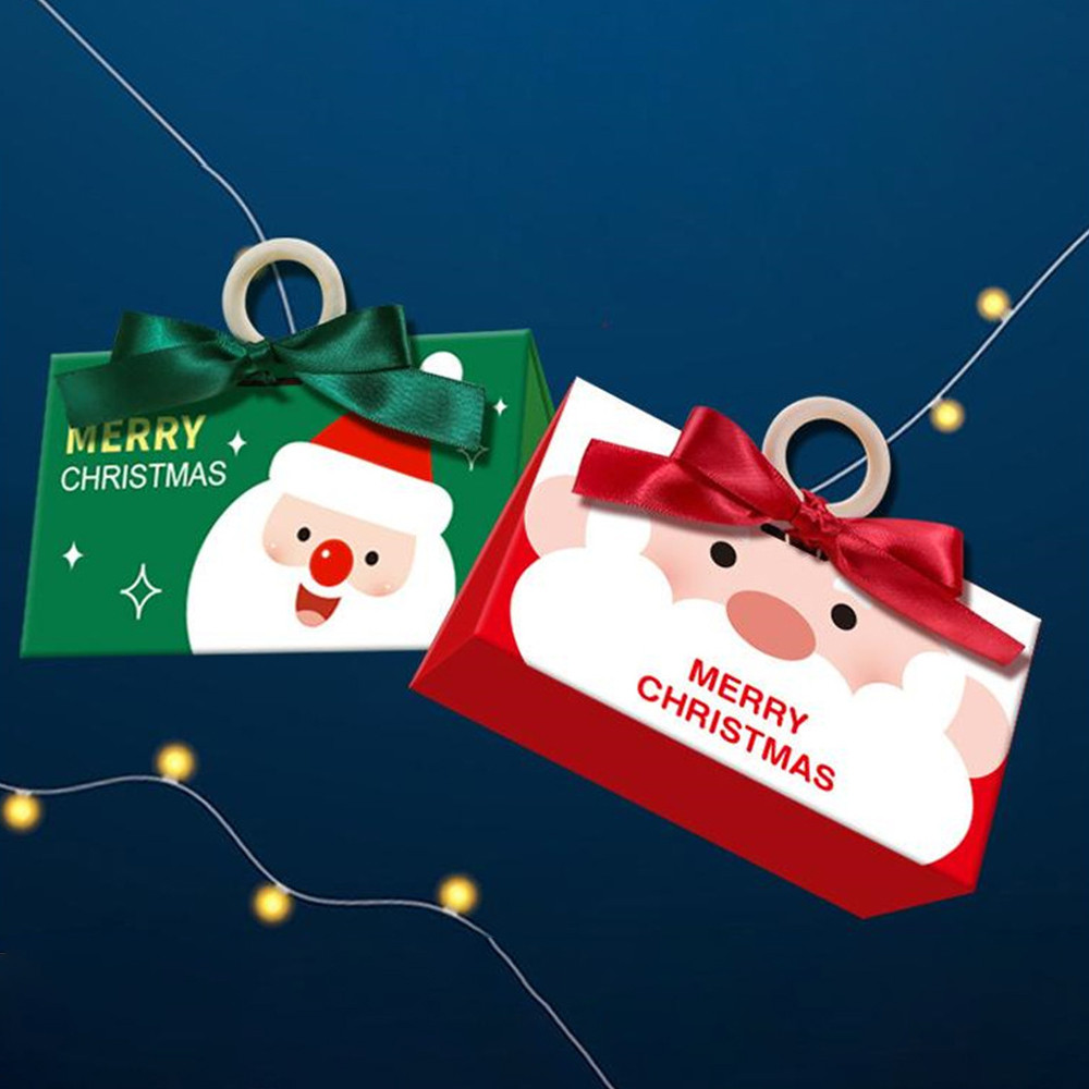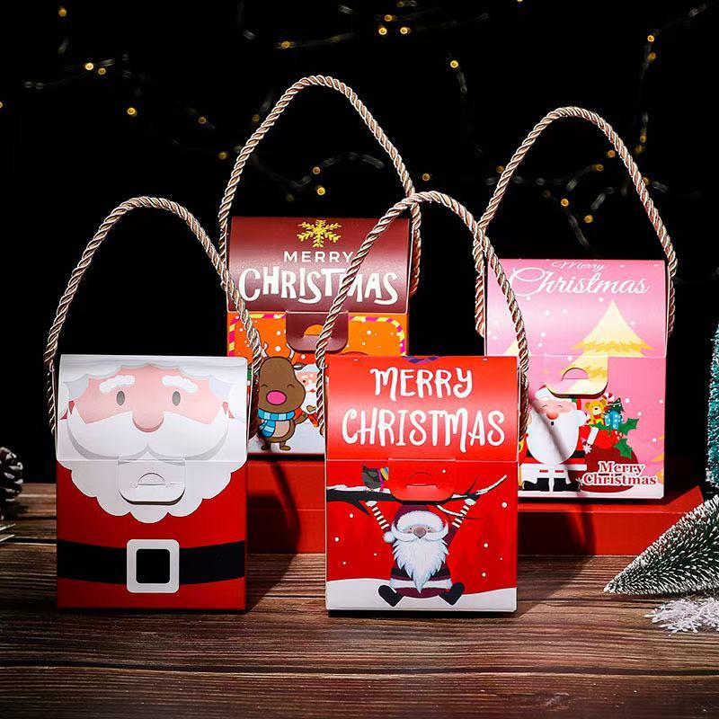 ✅✅NEW✅✅ กล่องทรงกระเป๋า พิมพ์ลายนคริสมาส เคลือเงอ กล่องใส่ขนม พร้อมเชือกหิ้ว
