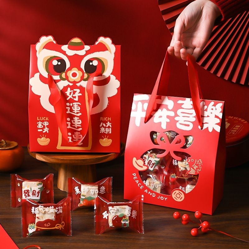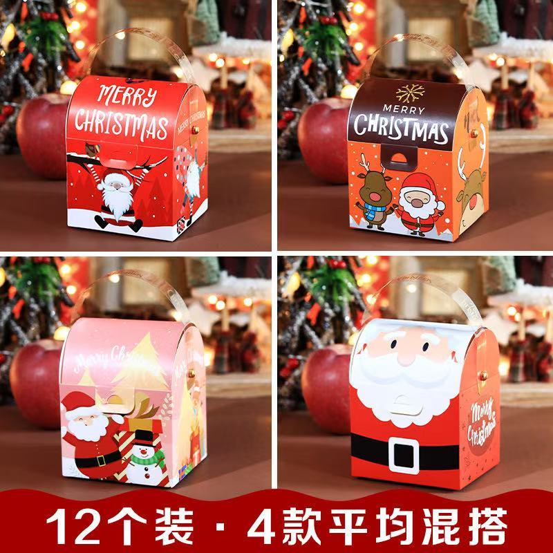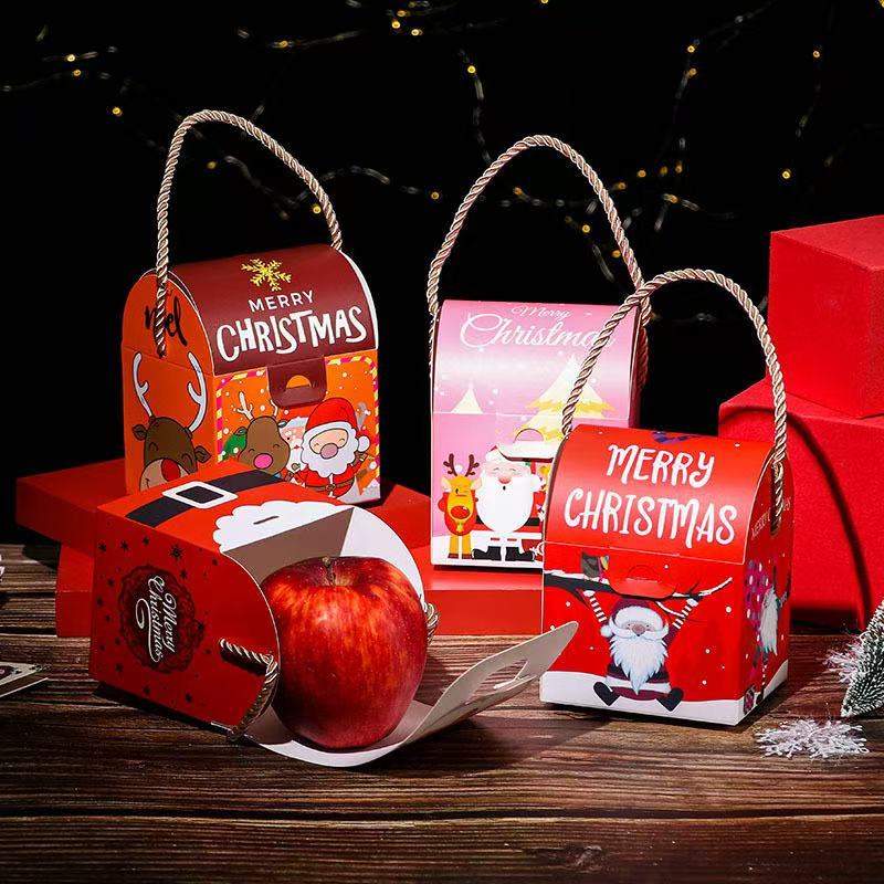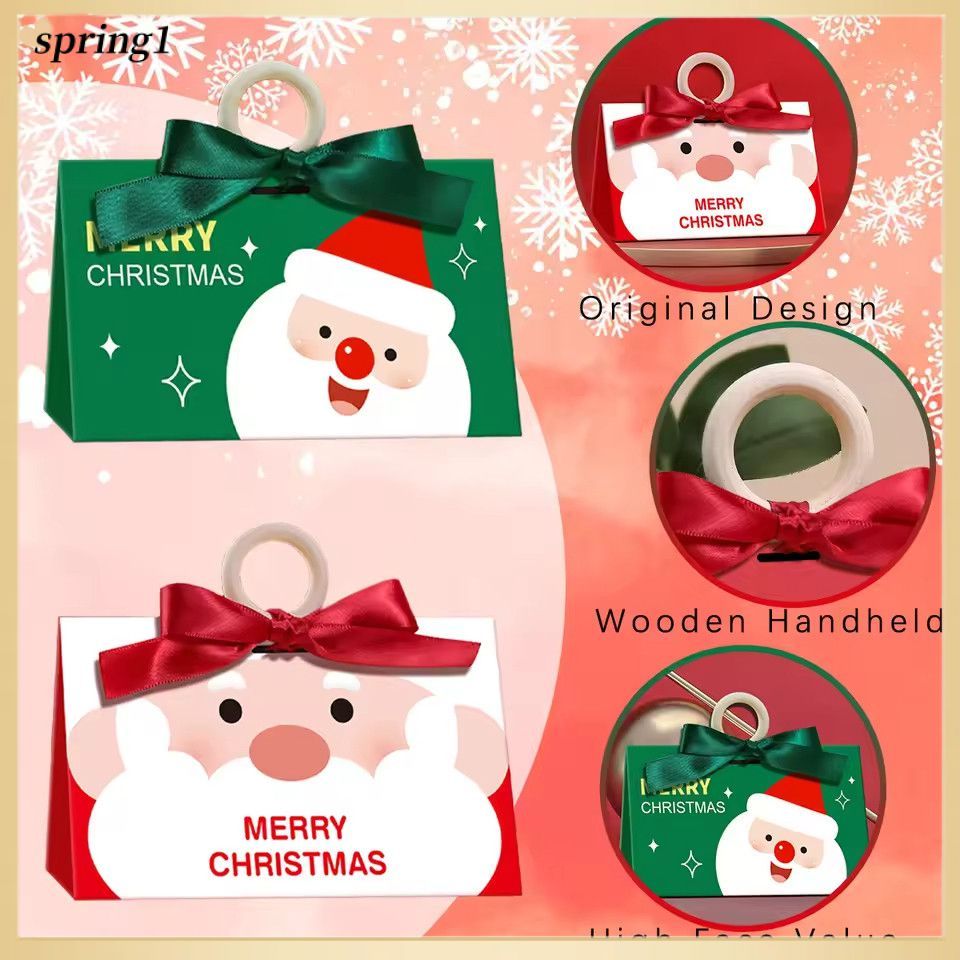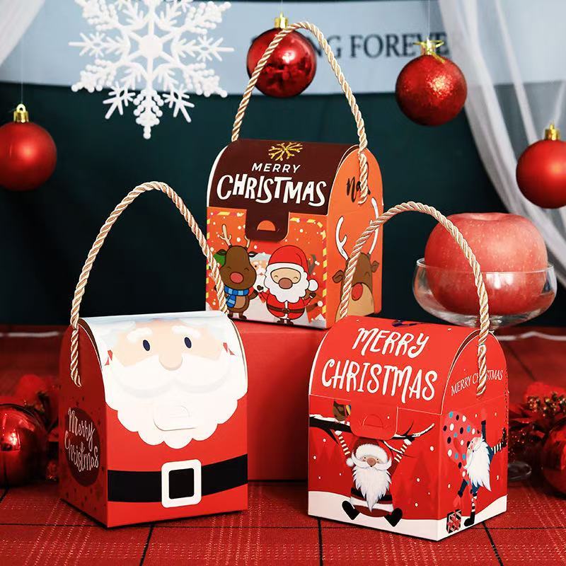 ✅✅NEW✅✅ กล่องทรงกระเป๋า พิมพ์ลายนคริสมาส เคลือเงอ กล่องใส่ขนม พร้อมเชือกหิ้ว