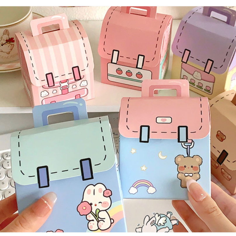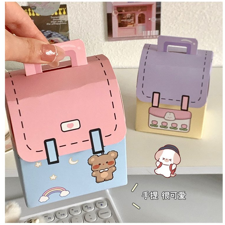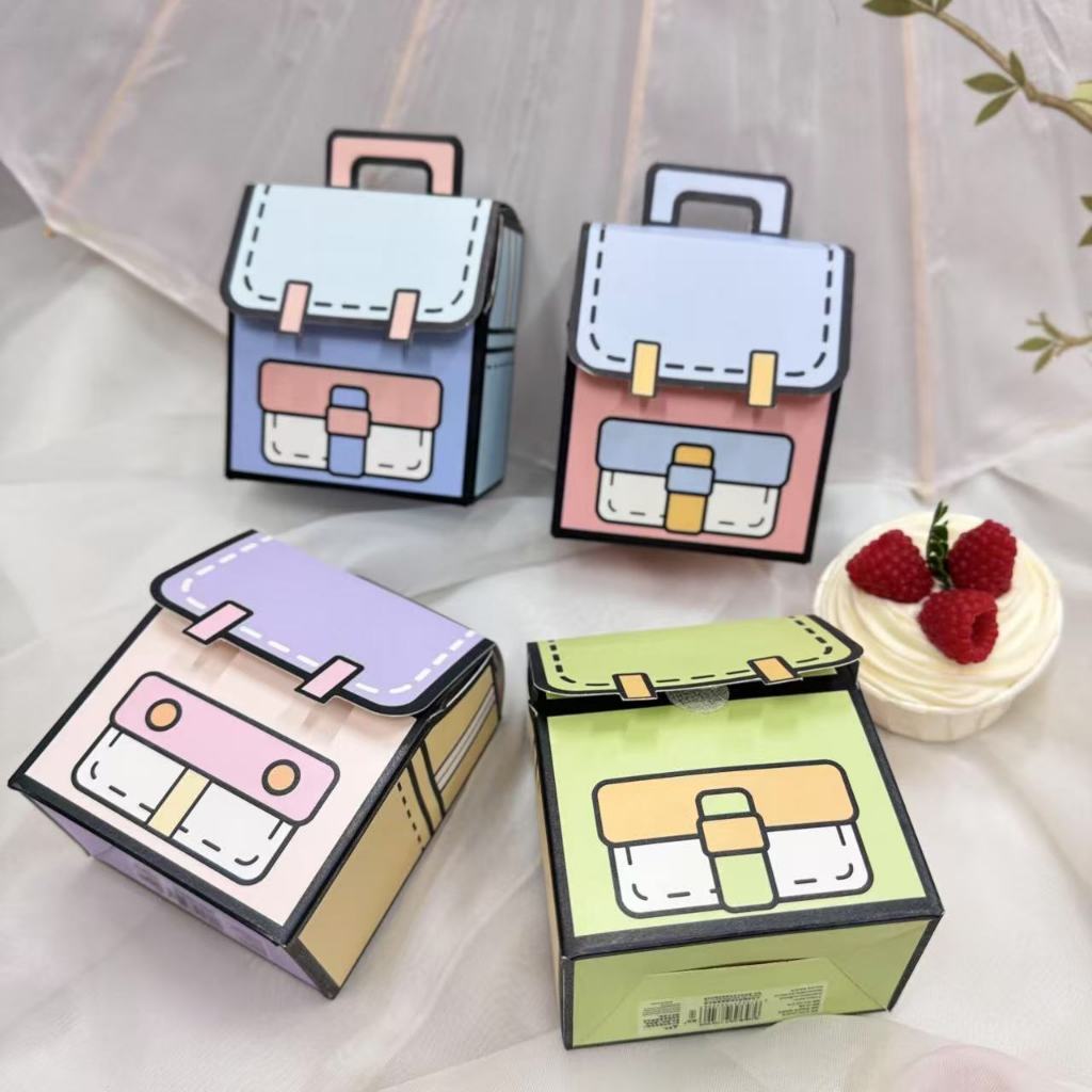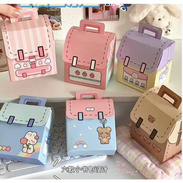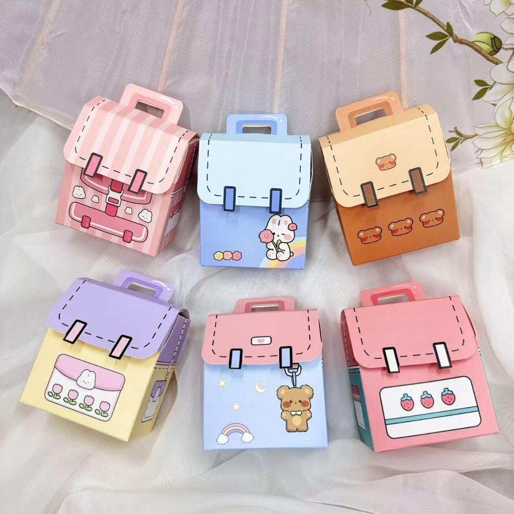 ✅แพ็ค6ชิ้น✅พร้อมส่ง..กล่องของขวัญ แบบพกพาสร้างสรรค์ กล่องกระดาษรูปทรงกระเป๋านักเรียน ใส่ขนม เป็นของขวัญสำหรับเด็ก