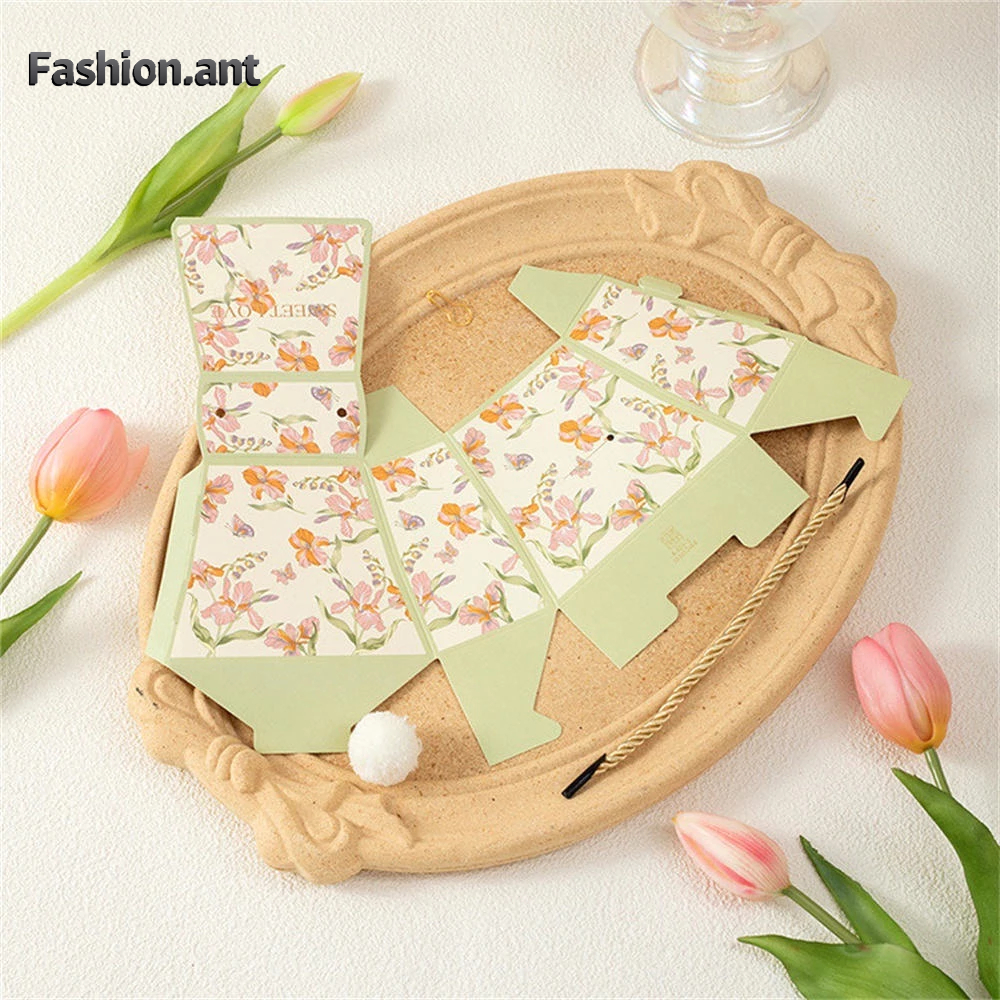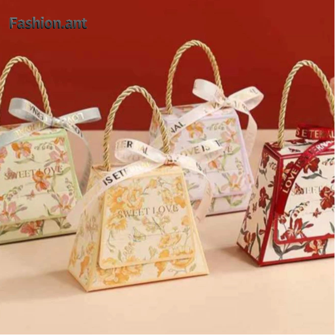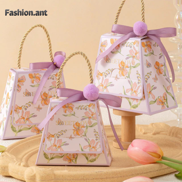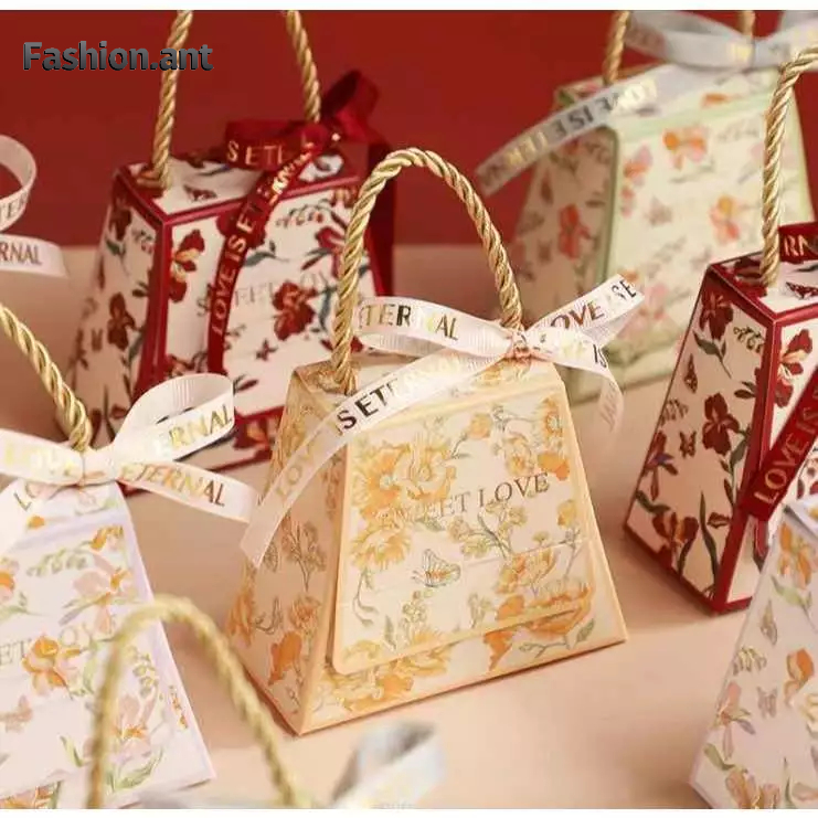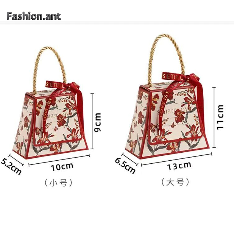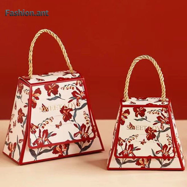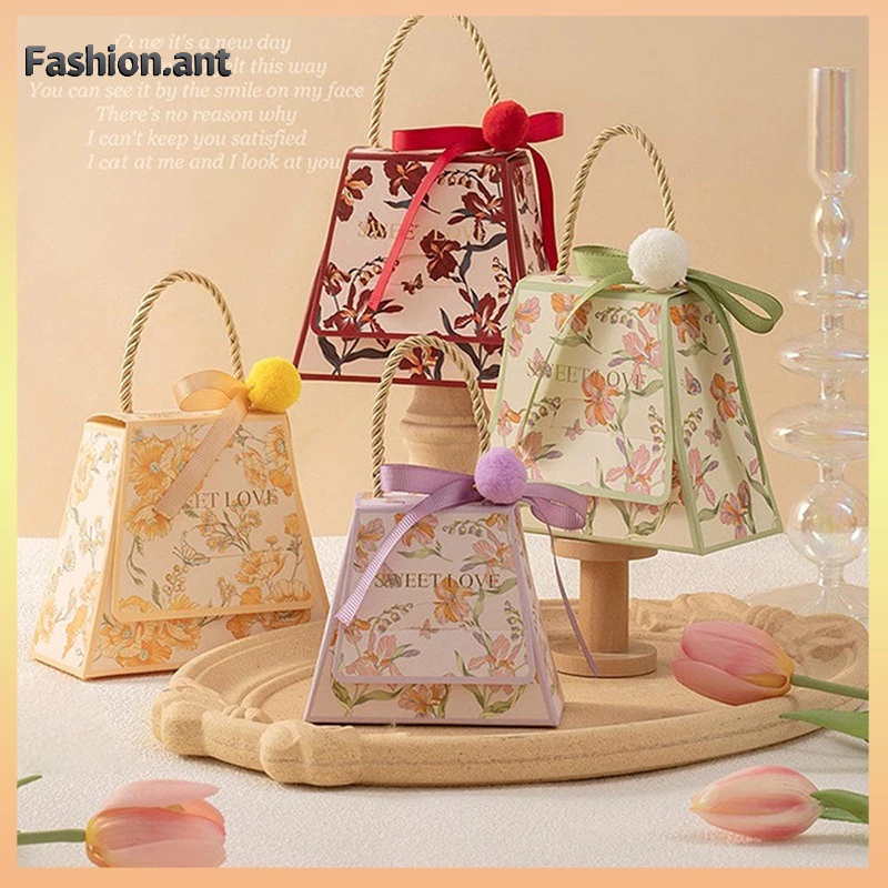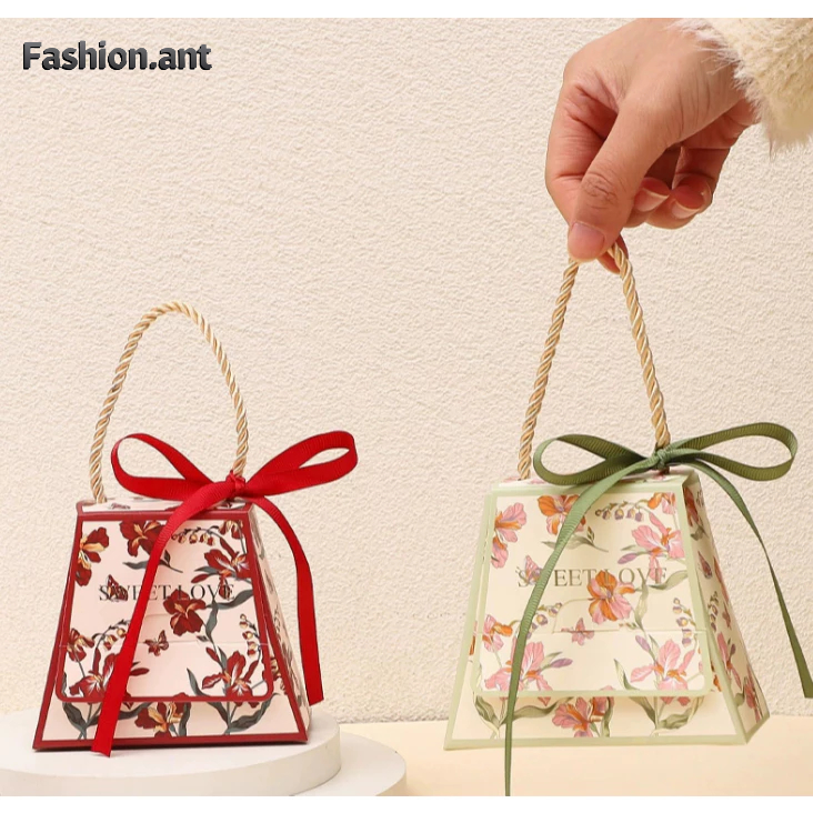 ✅สินค้าใหม่✅กล่องขนม กล่องใส่ของชำร่วย/ของขวัญ ลายดอกไม้ ทรงกระเป๋า มีหูหิ้ว