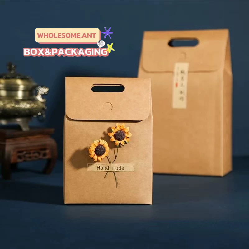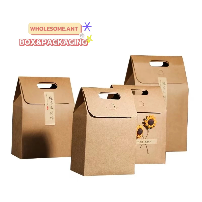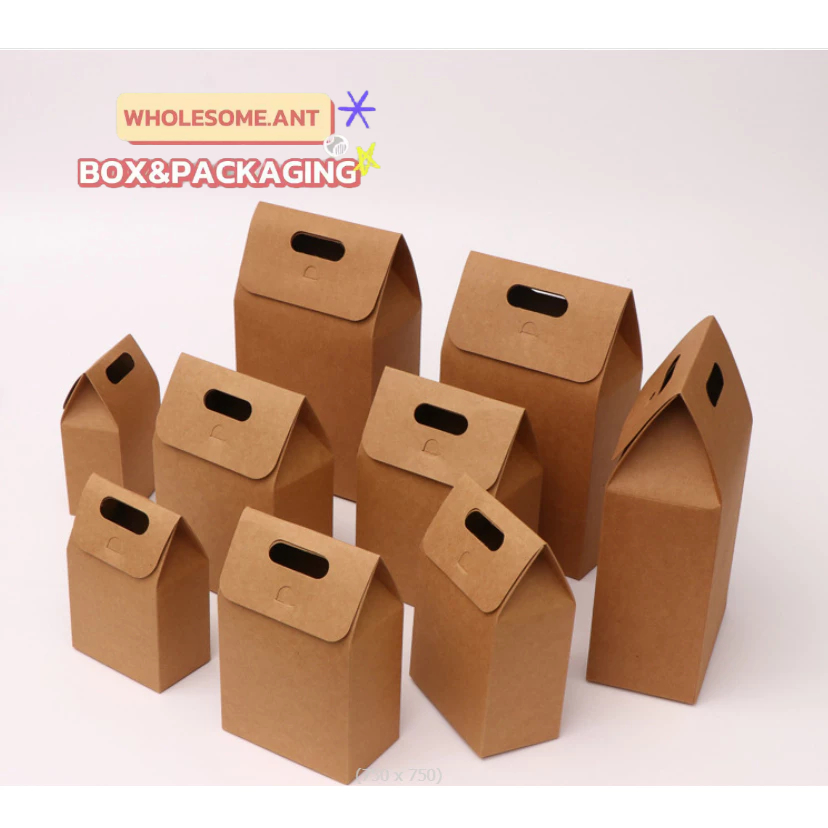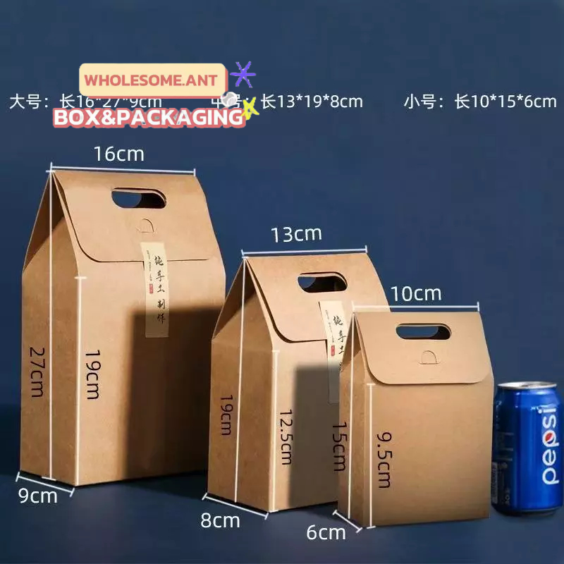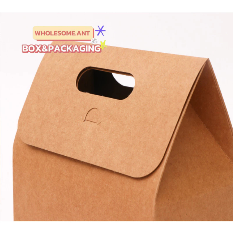 ✅WH✅กล่องคราฟท์ ใส่คุกกี๊ กล่องอาหารหูหิ้ว กล่องเค้กหูหิ้ว