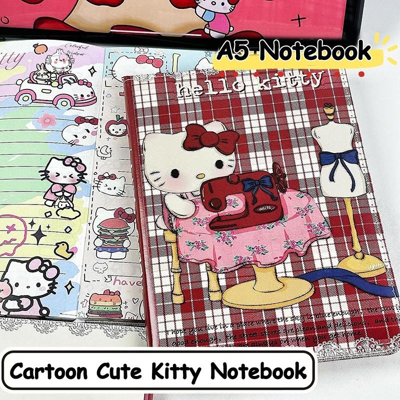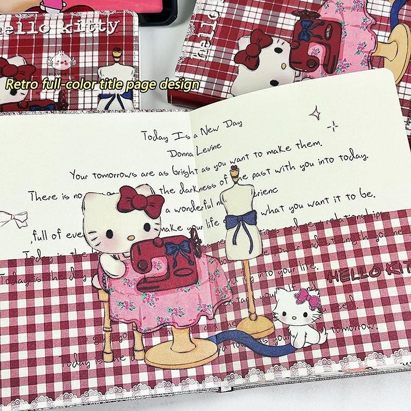 {maybest} Cute Retro Tailor Sanrio Hello Kitty Leather A5 Notebook Stationery Full Color Drawing Inner Page Student Writingbook {TH}