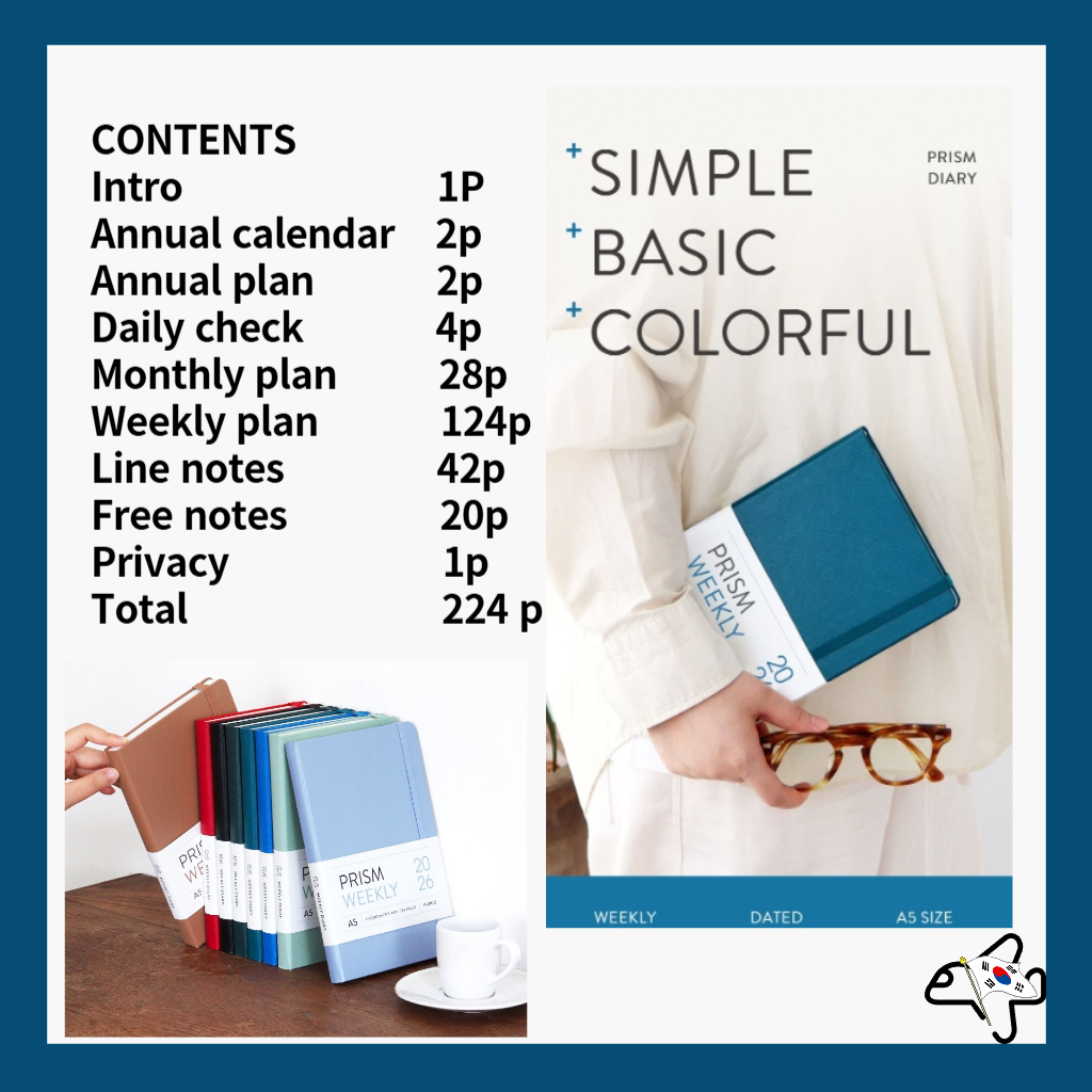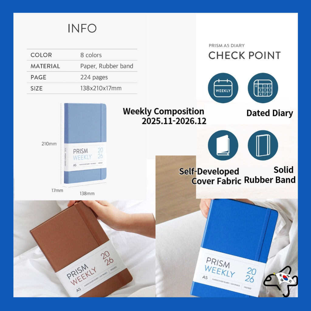 2026 Indigo Prism Weekly A5 Diary/Weekly Planner/ Indigo Planner/เกาหลี 2026 ไดอารี่
