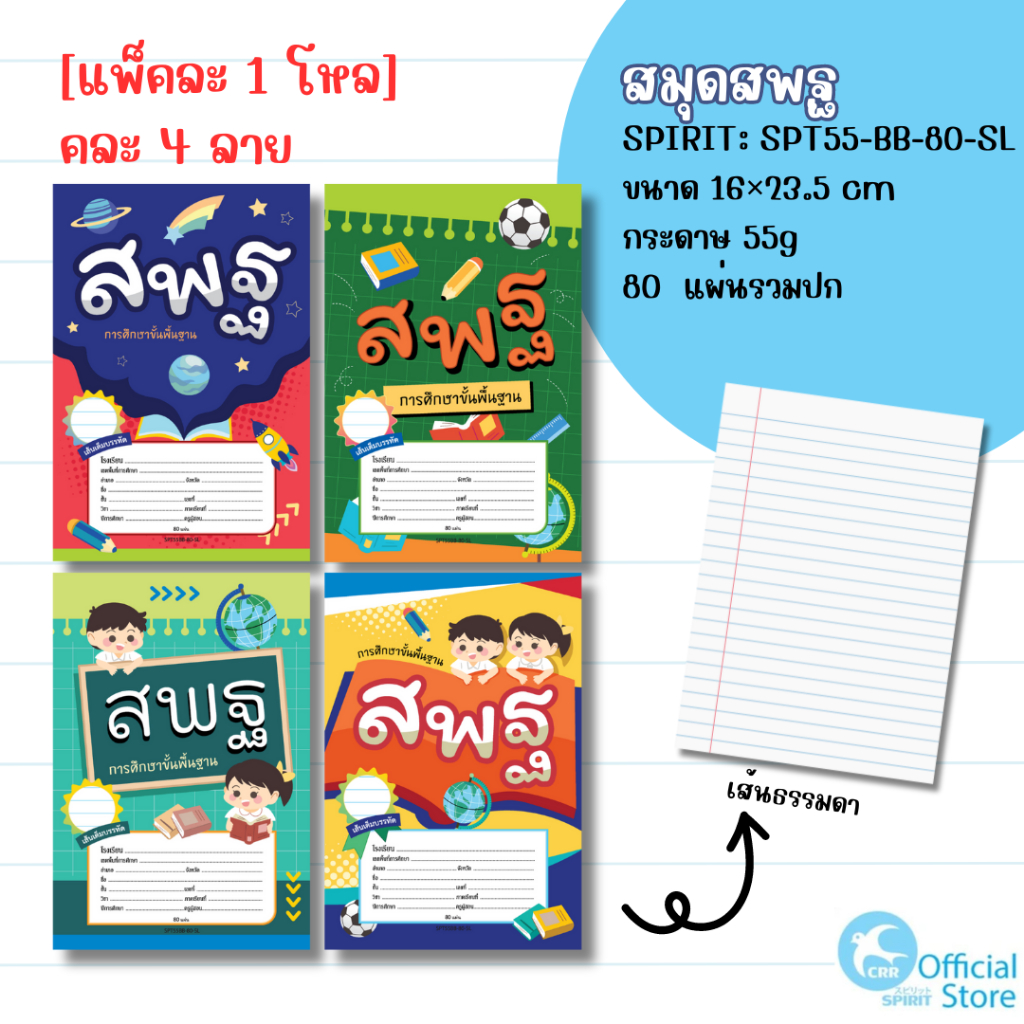 [ยกแพ๊ค 1 โหล] SPIRIT 9/80 BB 55g สมุดสพฐ เส้นธรรมดา ชื่อชั้นวิชา กระดาษหนา 55 แกรม 80 แผ่นรวมปก