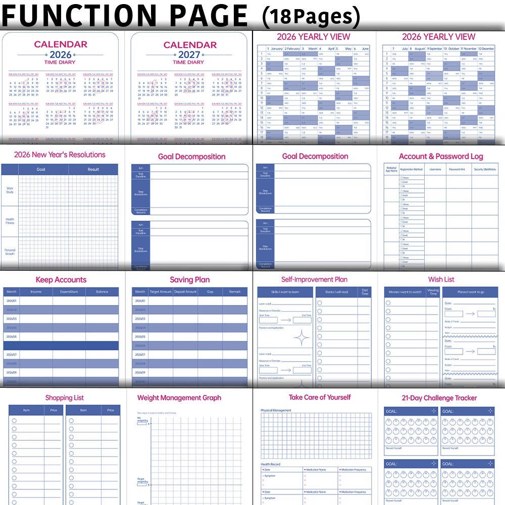 2026 Planner A5 Annual Planner Agenda Yearly & Weekly & Methly Schedules Vintage เครื่องเขียน Office & School Supplies