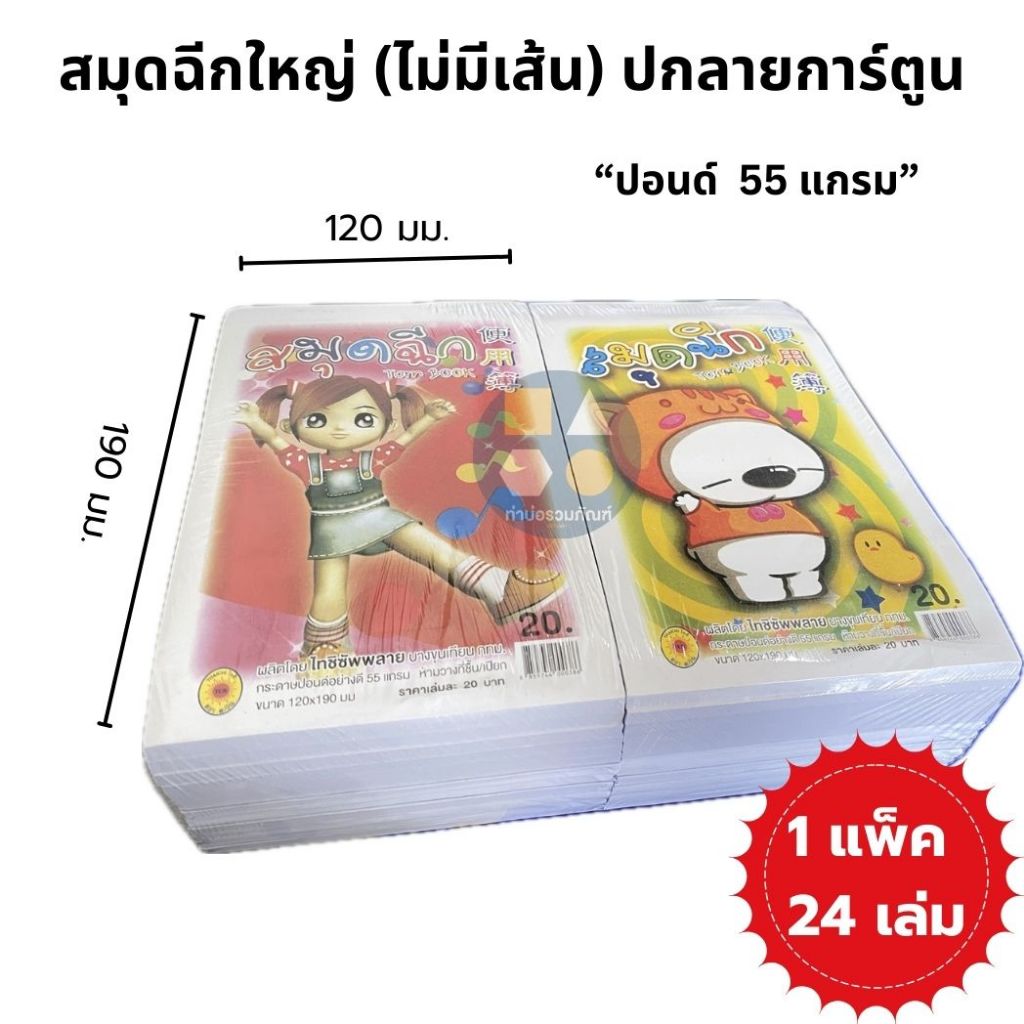[ยกแพ็ค 24เล่ม]สมุดฉีกปกการ์ตูน(ไม่มีเส้น)กระดาษปอนด์อย่างดี 55 แกรม ขนาด120*190มม.