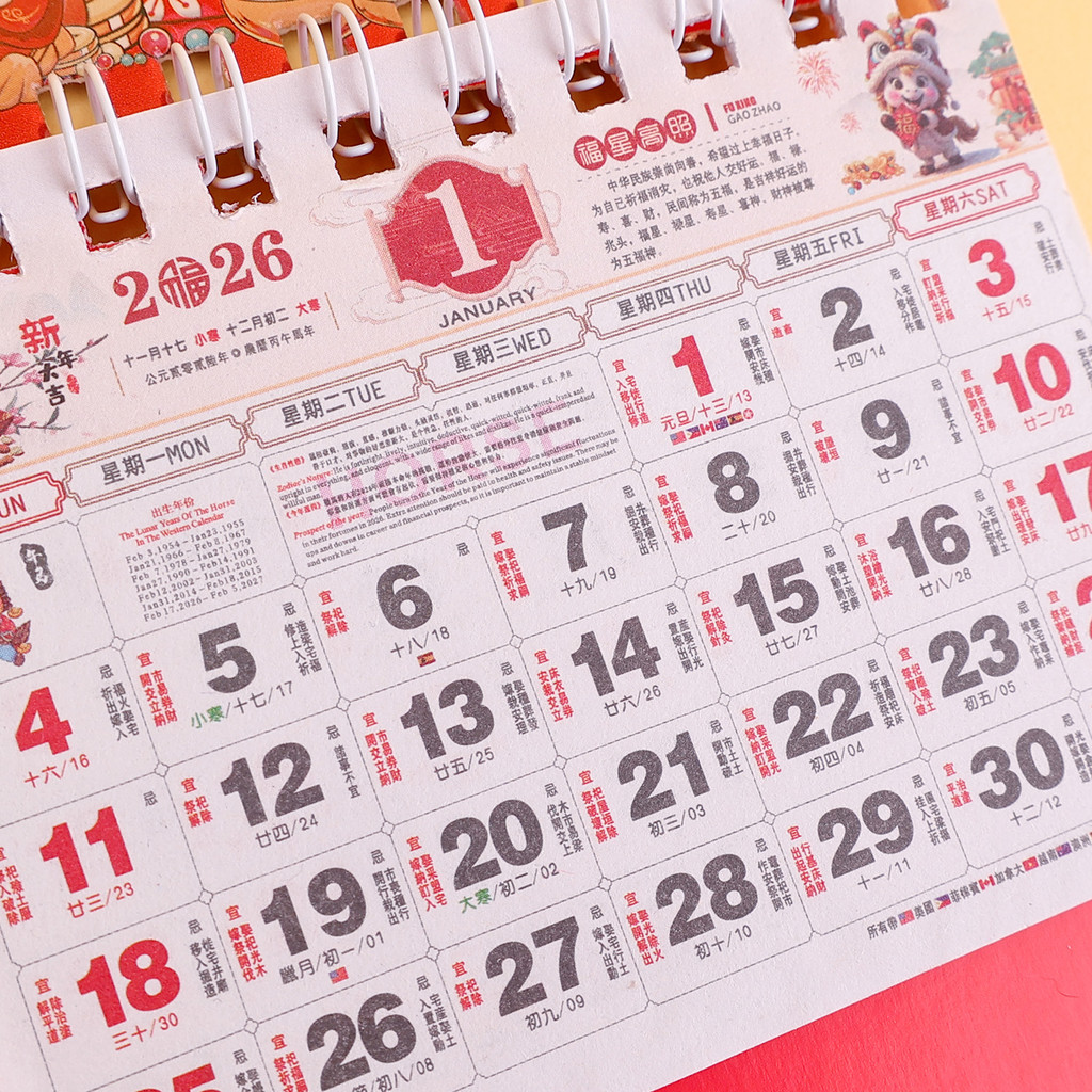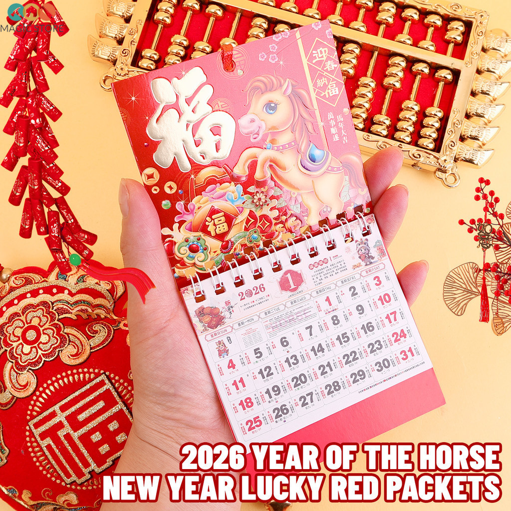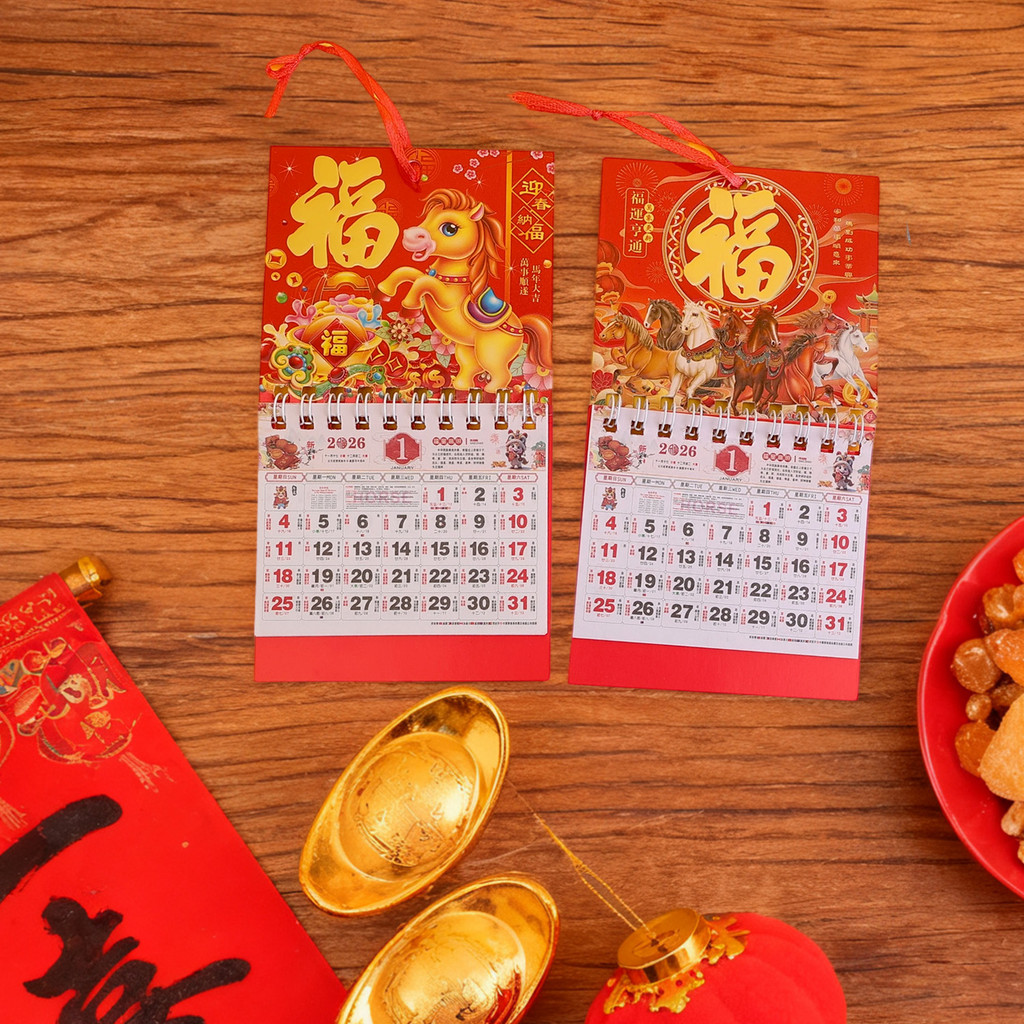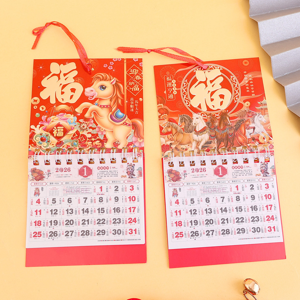 [บ้าน] 1/2/4 ชิ้นโต๊ะทํางานตกแต่งปฏิทินขนาดเล็ก | 2026 ลายเทพเจ้าแห่งความมั่งคั่งปีม้าสไตล์จีนปฏิทินตั้งโต๊ะเทศกาลฤดูใบไม้ผลิพร้อมการออกแบบพลิกง่าย