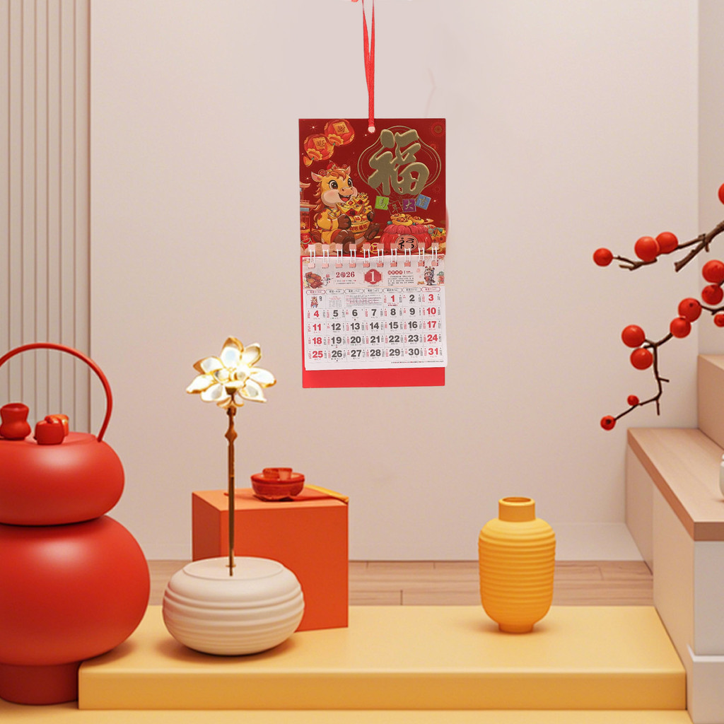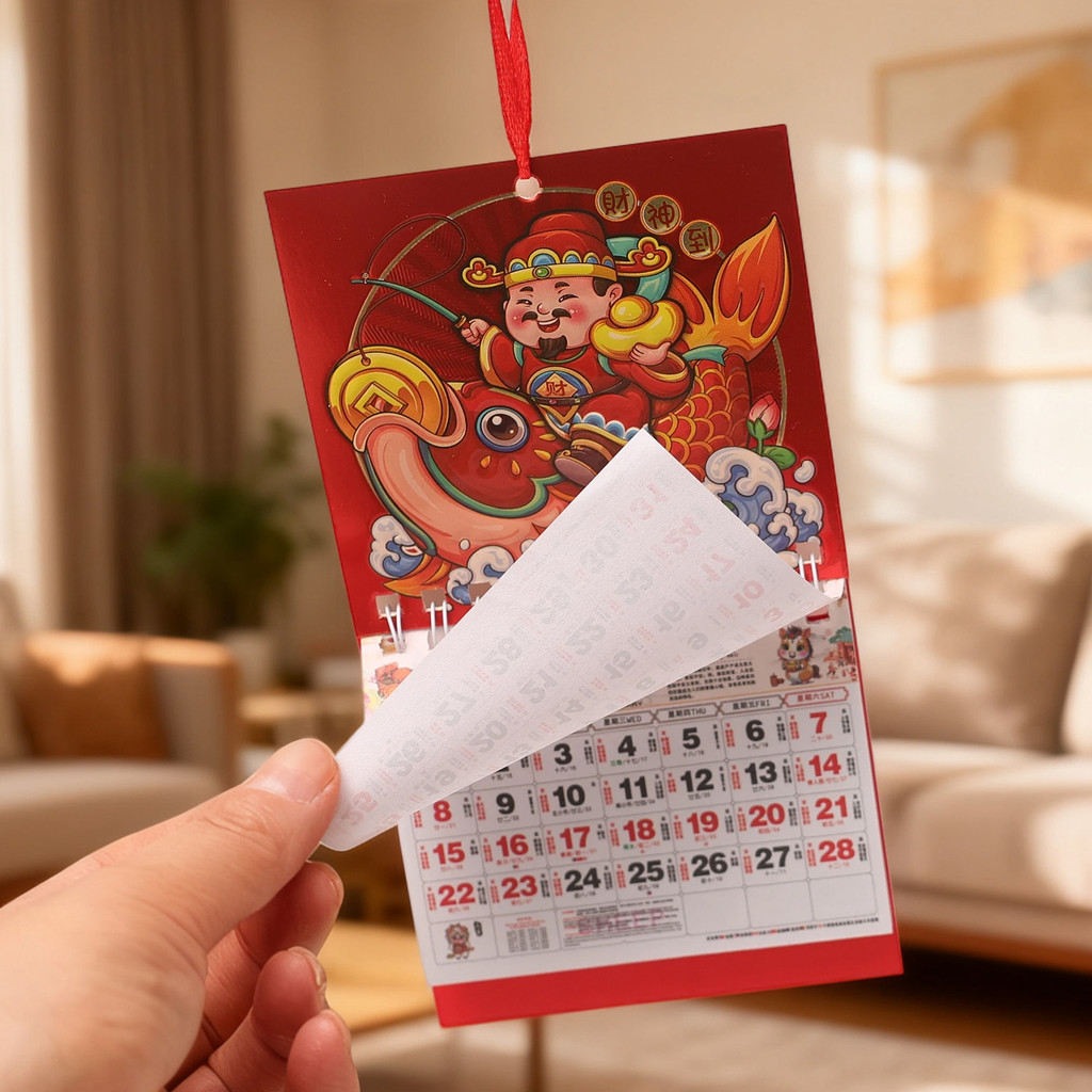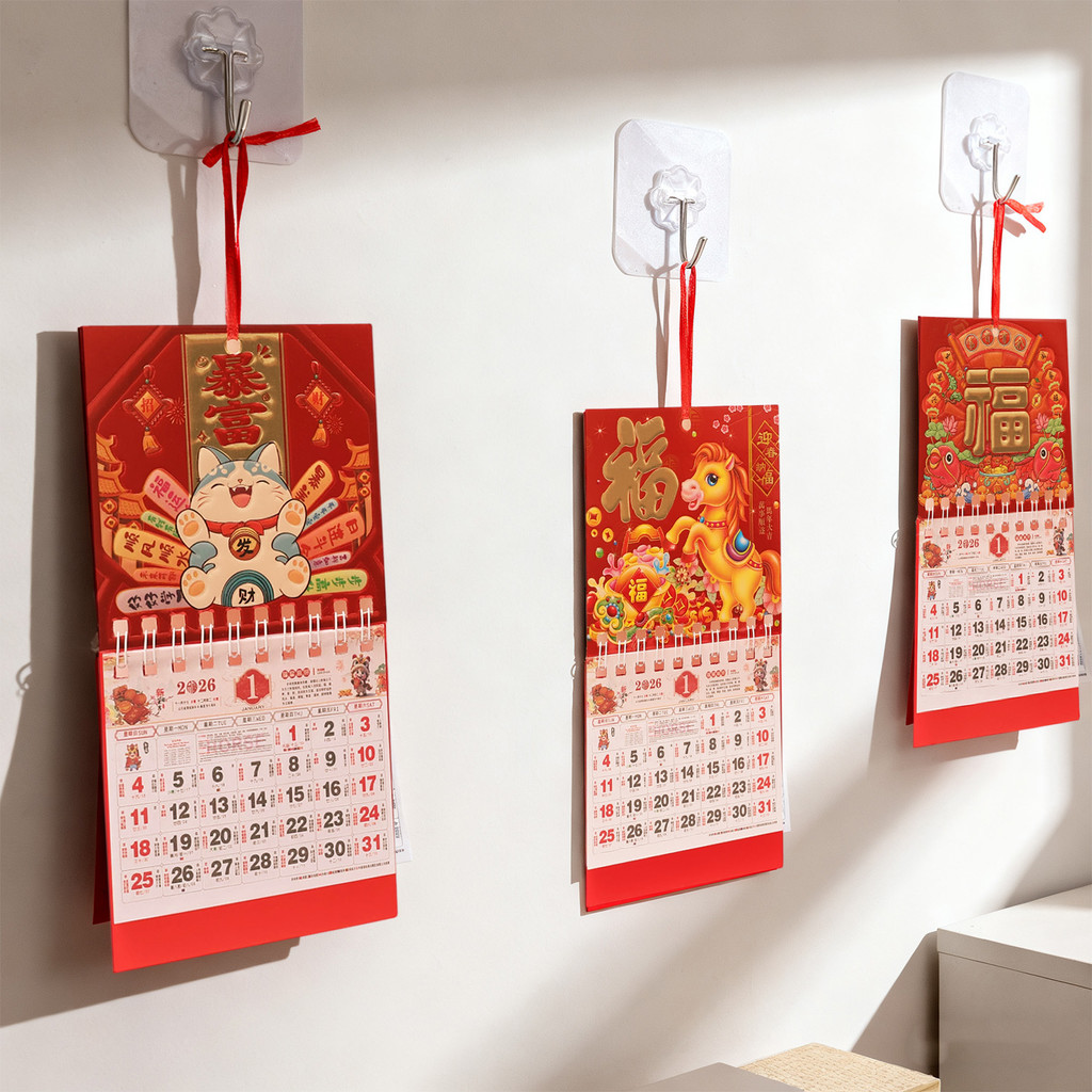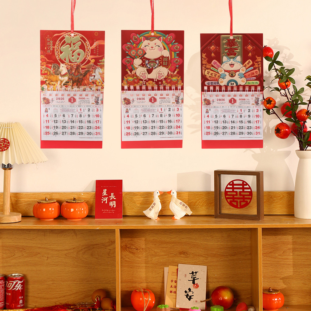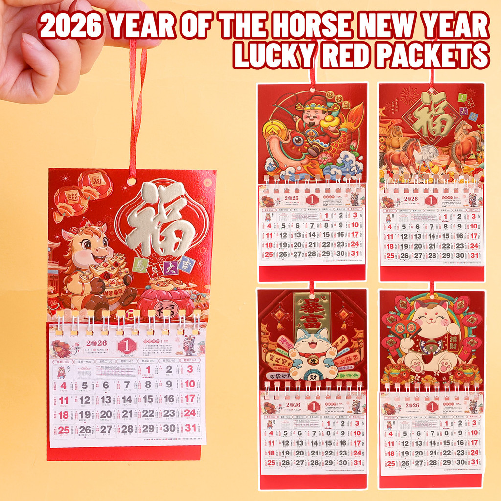 [บ้าน] 1/2/4 ชิ้นโต๊ะทํางานตกแต่งปฏิทินขนาดเล็ก | 2026 ลายเทพเจ้าแห่งความมั่งคั่งปีม้าสไตล์จีนปฏิทินตั้งโต๊ะเทศกาลฤดูใบไม้ผลิพร้อมการออกแบบพลิกง่าย