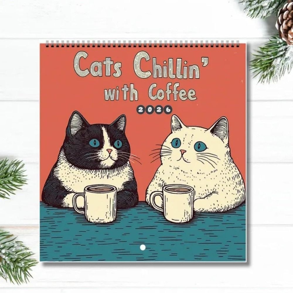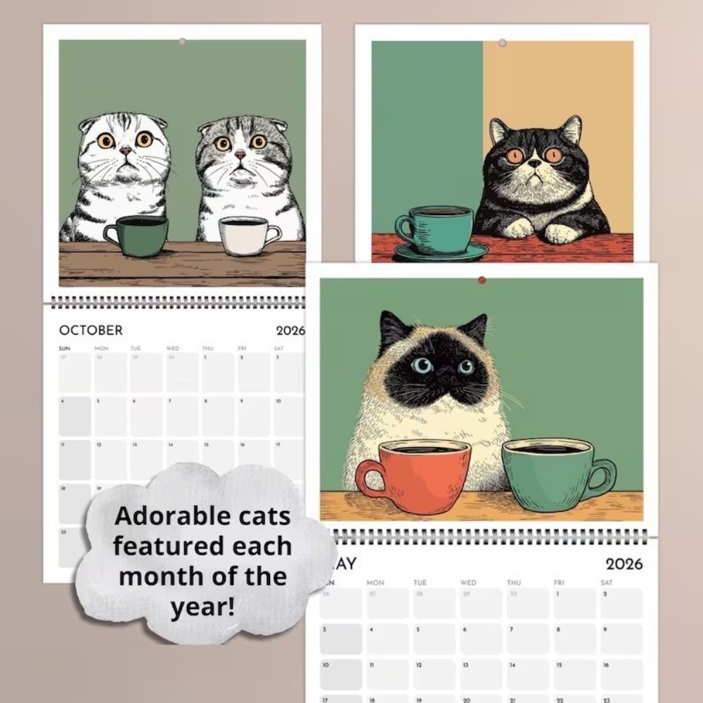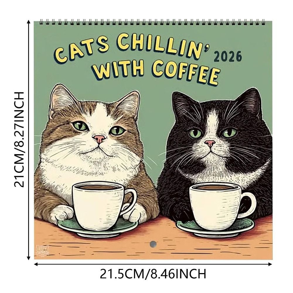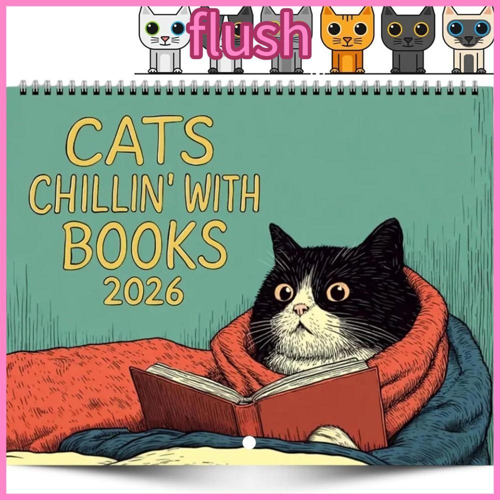 ?? FLUSH 2026 ปฏิทิน, 12 รายเดือนกระดาษหนา Cat Cafe ปฏิทิน, Creative Family Planner Handmade Desktop ปฏิทินตกแต่งบ้าน