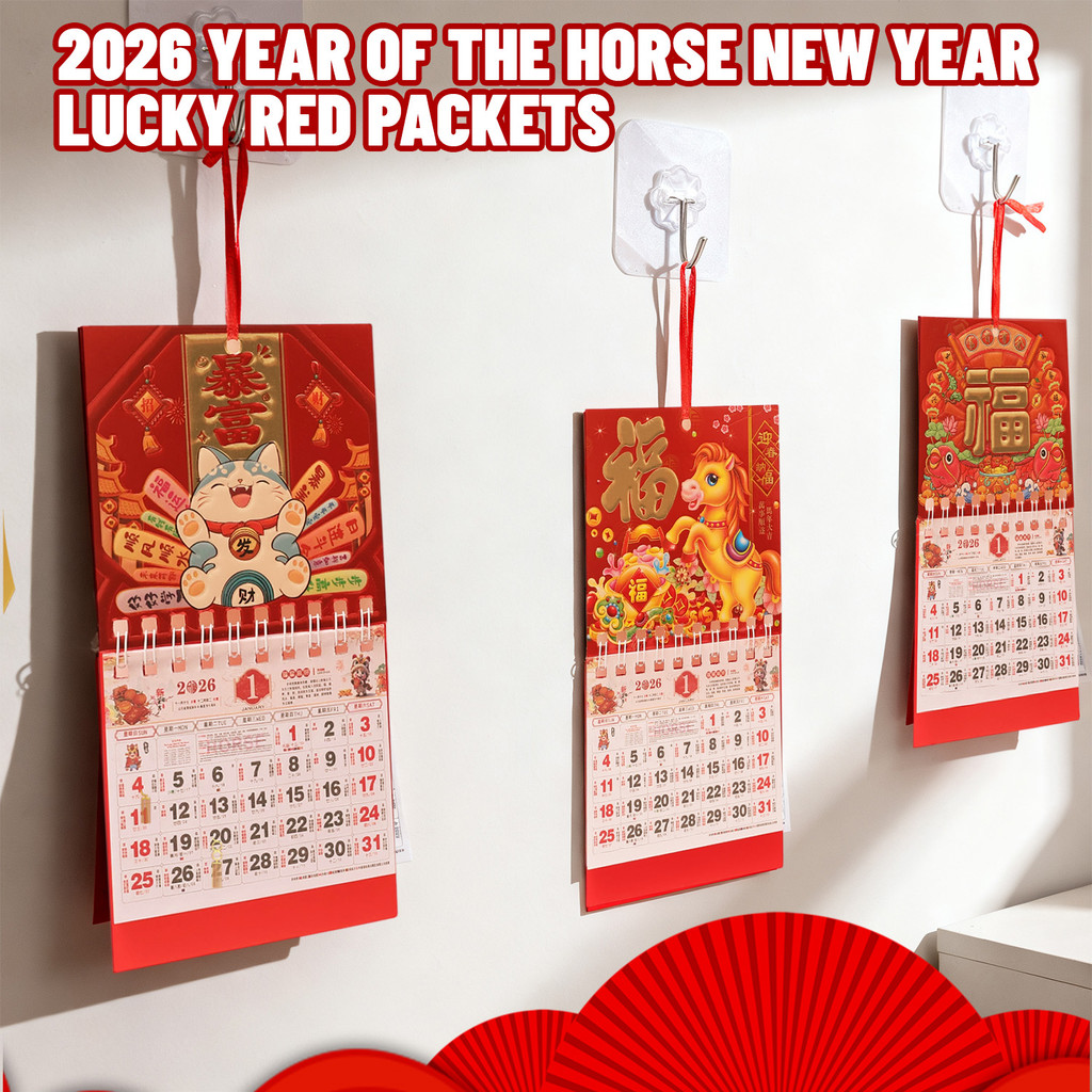[ชม.&ล]2026 ม้าปีองค์ประกอบปฏิทินผนังขนาดเล็กแพ็ค-การออกแบบรูปแบบที่ไม่ซ้ํากันสําหรับตกแต่งโต๊ะสไตล์พลิกใช้งานง่าย(1/2/3/4/5ชุด)