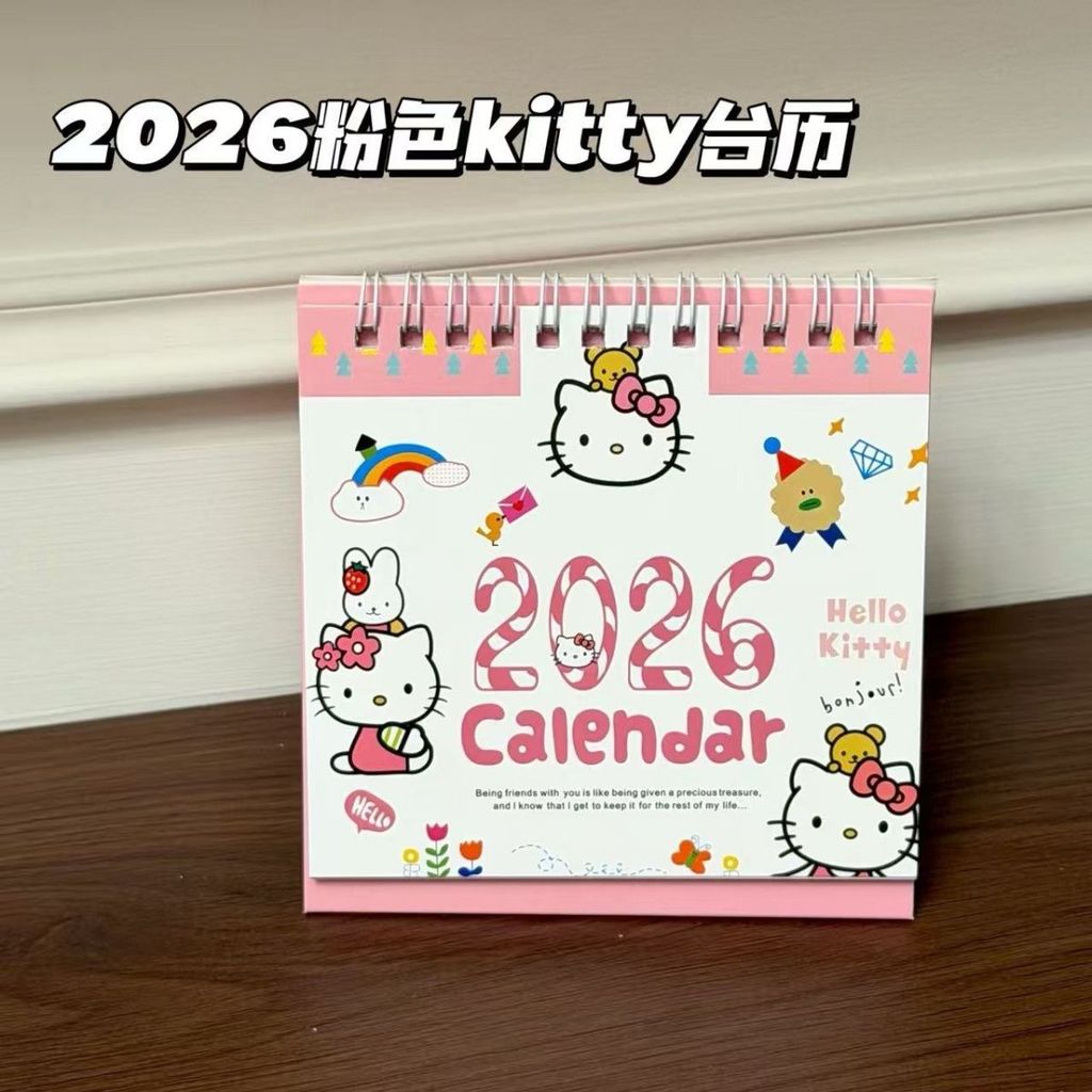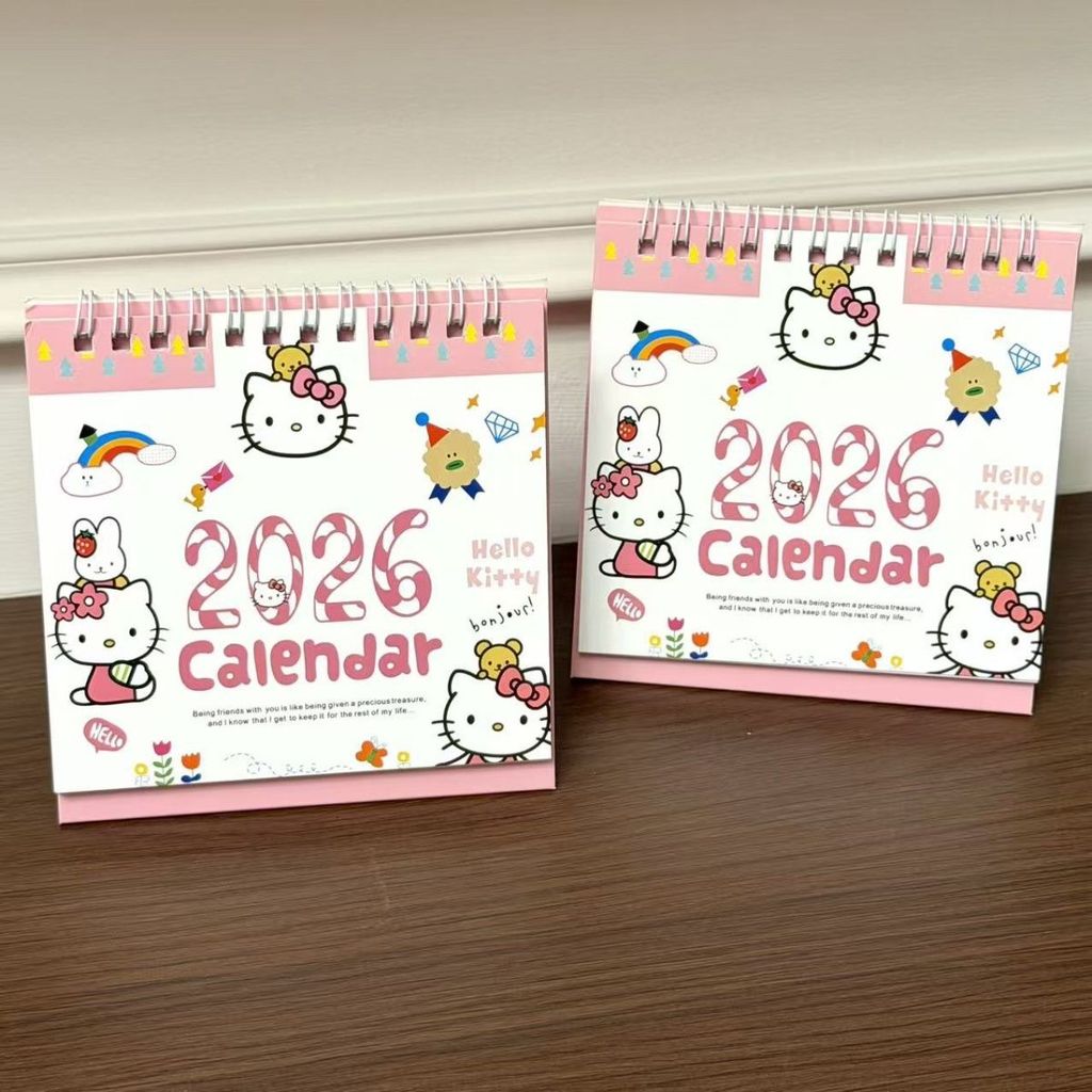 [ข้อเสนอพิเศษ] สไตล์ใหม่ 2026 สีชมพู Hello Kitty ปฏิทินตั้งโต๊ะมูลค่าสูงการ์ตูนสร้างสรรค์ ins ปฏิทินคิตตี้น่ารักตกแต่งเดสก์ท็อปของขวัญคริสต์มาสนักเรียน