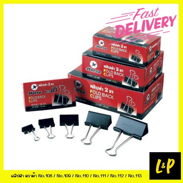 ตราม้า คลิปดำ คลิปหนีบกระดาษ No.108/No.109/No.110/No.111/No.112/No.113
