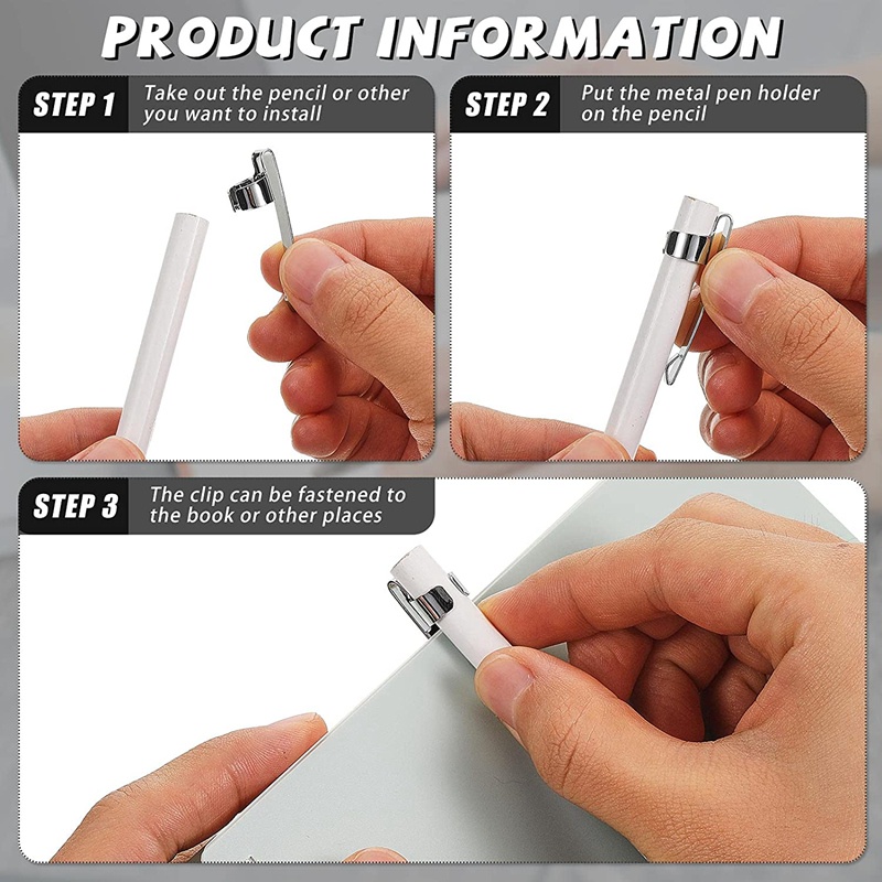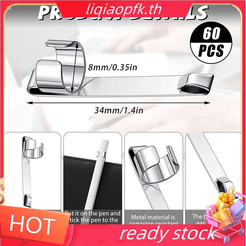 พร้อม เก็บ คลิปดินสอโลหะสไลด์บนคลิปพ็อกเก็ตดินสอ สแน็ป ใน, คลิปที่ใส่ดินสอโลหะแขวนได้ คลิปหนีบดินสอแบบพกพา, 60 ชิ้น