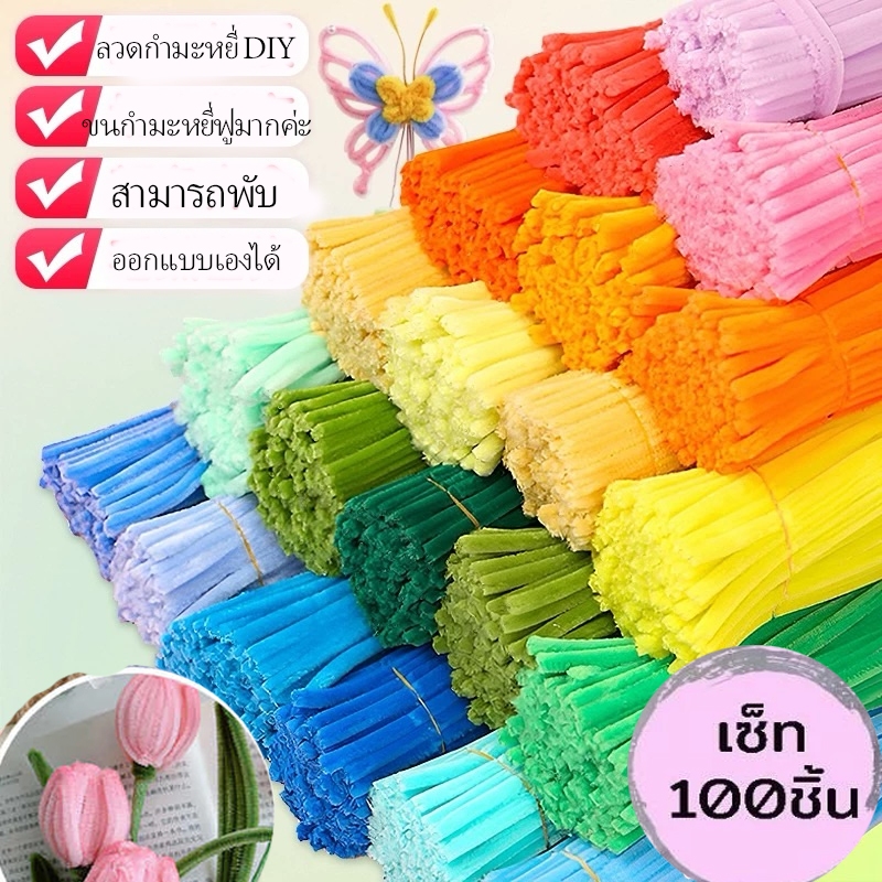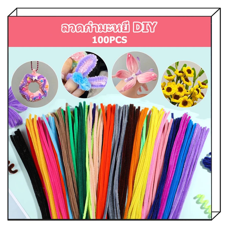 ลวดกำมะหยี่ DIYเซทลวดกำมะหยี่ ชุดละ10สี 100 เส้น ของเล่นฮิตใน tiktok สร้างงานประดิษฐ์ เด็กทำงานฝีมือ งานฝีมือเด็ก