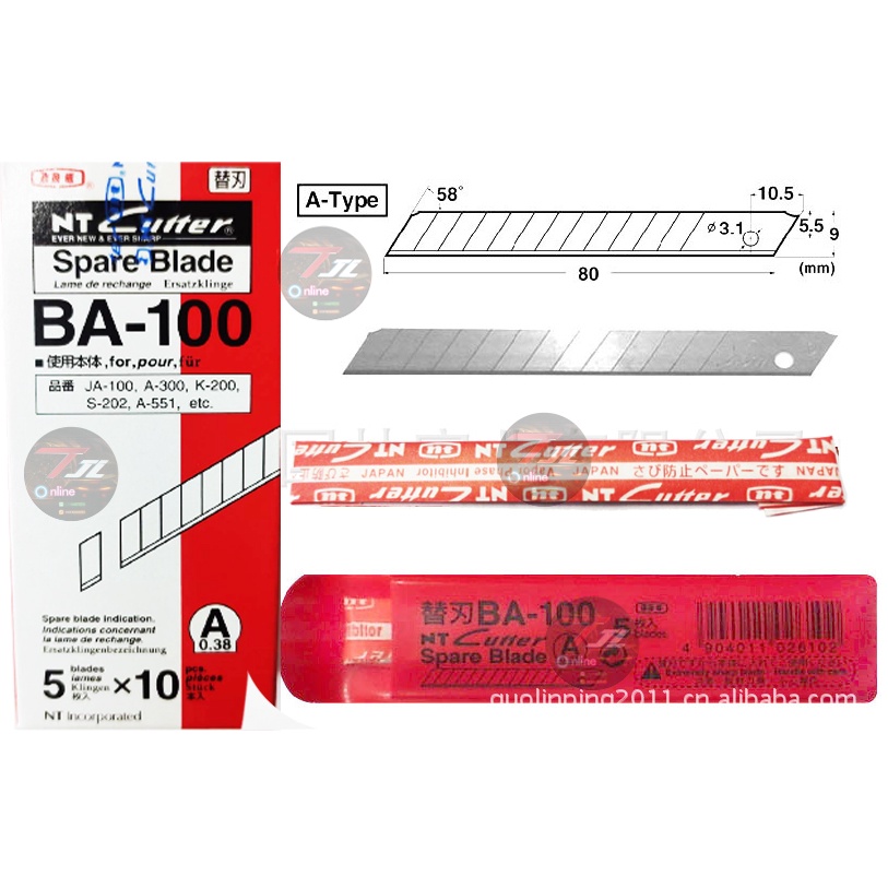 【สินค้าพร้อมส่ง】ใบมีดคัตเตอร์ NT BD-100 และ BA-100 ยกกล่อง 50 ใบ