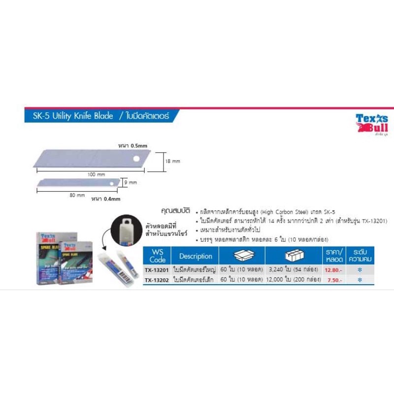**แพค 6 ใบ** Texas Bull ใบมีดคัตเตอร์เล็ก TX-13202 R-205S 9 มม. 1 หลอด R-205S คุ้มค่า R205S