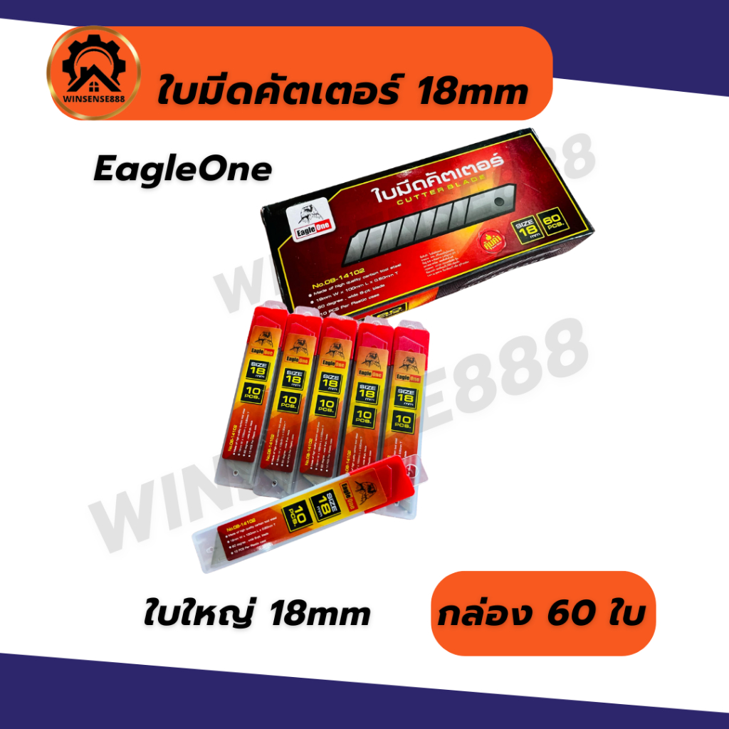 (ยกกล่อง 60ใบ) Eagleone ใบมีดคัตเตอร์ ใบคัดเตอร์ ใบใหญ่ 18mm